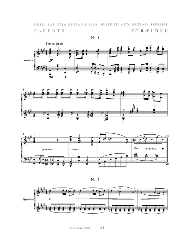 The piano pieces for Parents (Forældre) were presumably composed in 1908. A draft is dated 26 January 1908, but no further evidence of its genesis has survived.