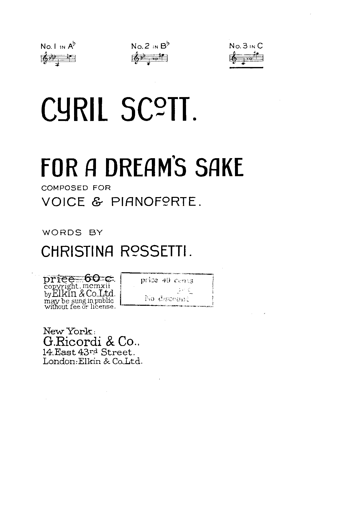 | Genre Categories | Songs; For voice, piano; For voices with keyboard; |