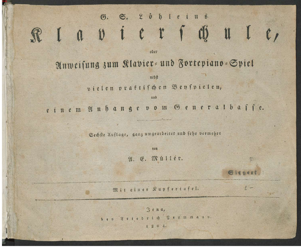 | Alternative. Title | Fortepiano-Schule oder Anweisung zur richtigen und geschmackvollen Spielart dieses Instruments nebst vielen praktischen Beyspielen und einem Anhange vom Generalbass |