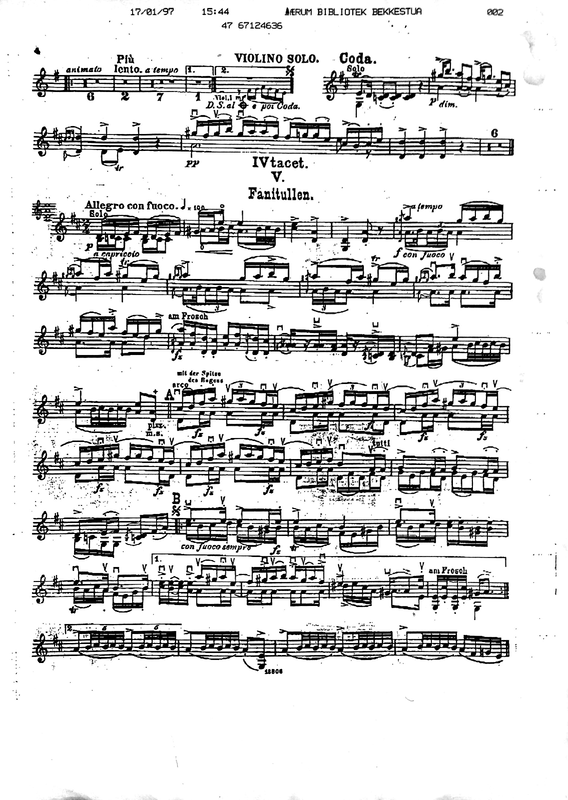 Violin solo scordatura tuning: ADae. Also used for Violins I (A & B) in Mvt. V. Fanitullen. No solo violin in Mvt. IV.