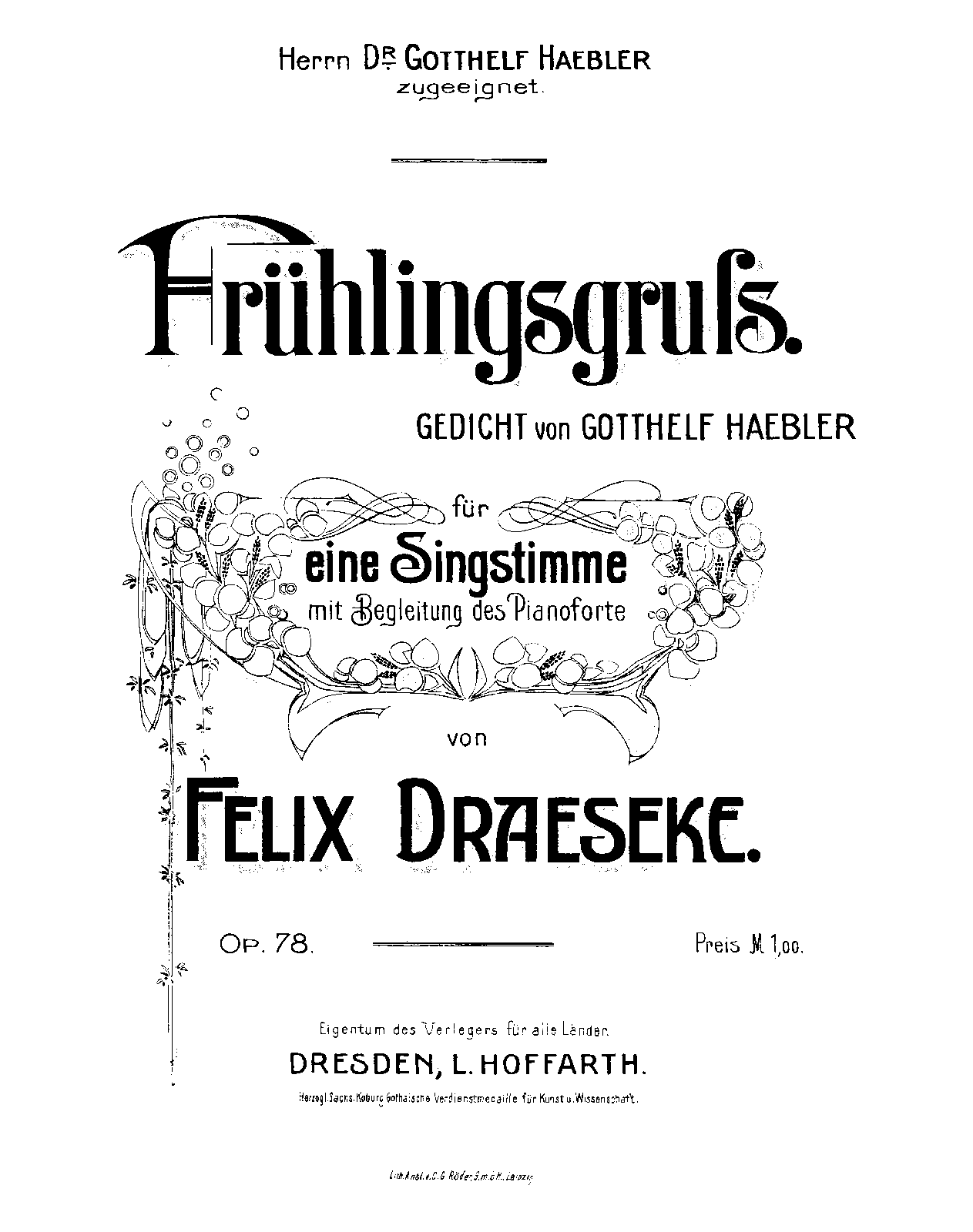| Alternative. Title | Frühlingsgruß Gedicht von Gotthelf Haebler für eine Singstimme mit Begleitung des Pianoforte |