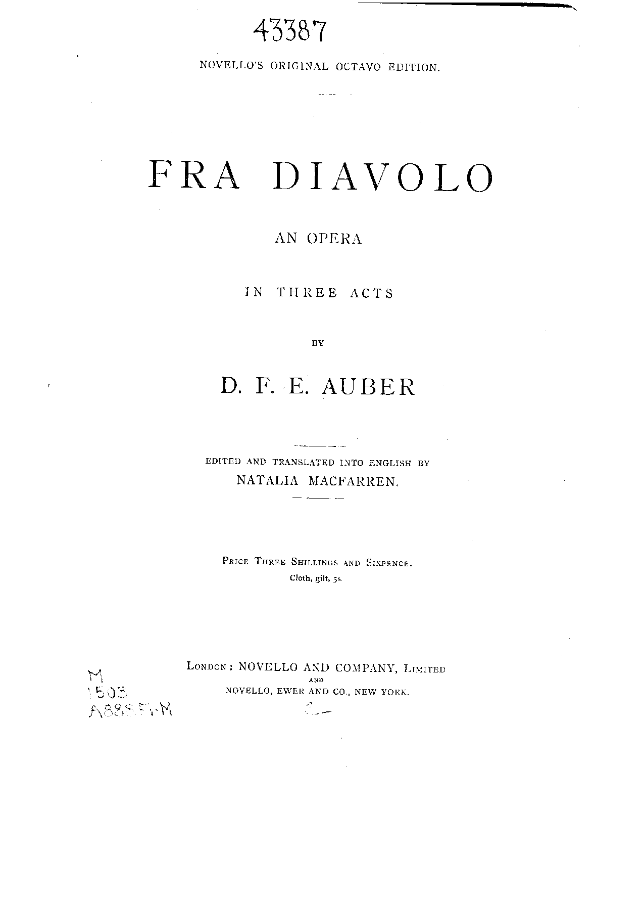 | Name Translations | Fra Diavolo (opera); Fra Diavolo (ooppera); Фра-Дьяволо; フラ・ディアヴォロ; Ֆրա Դյավոլո (օպերա); |