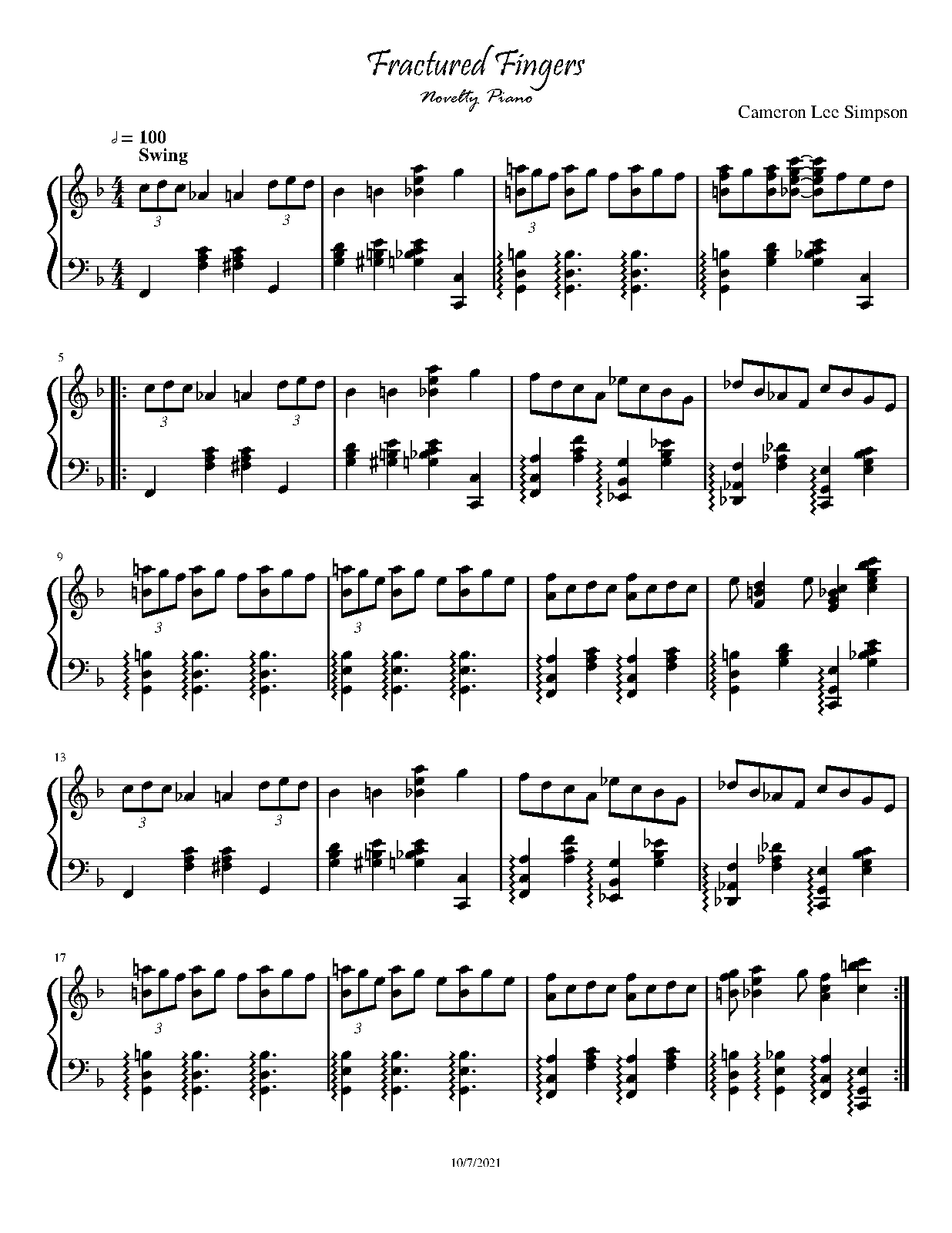 This novelty piece is very tricky and requires nimble and stretchy fingers.
