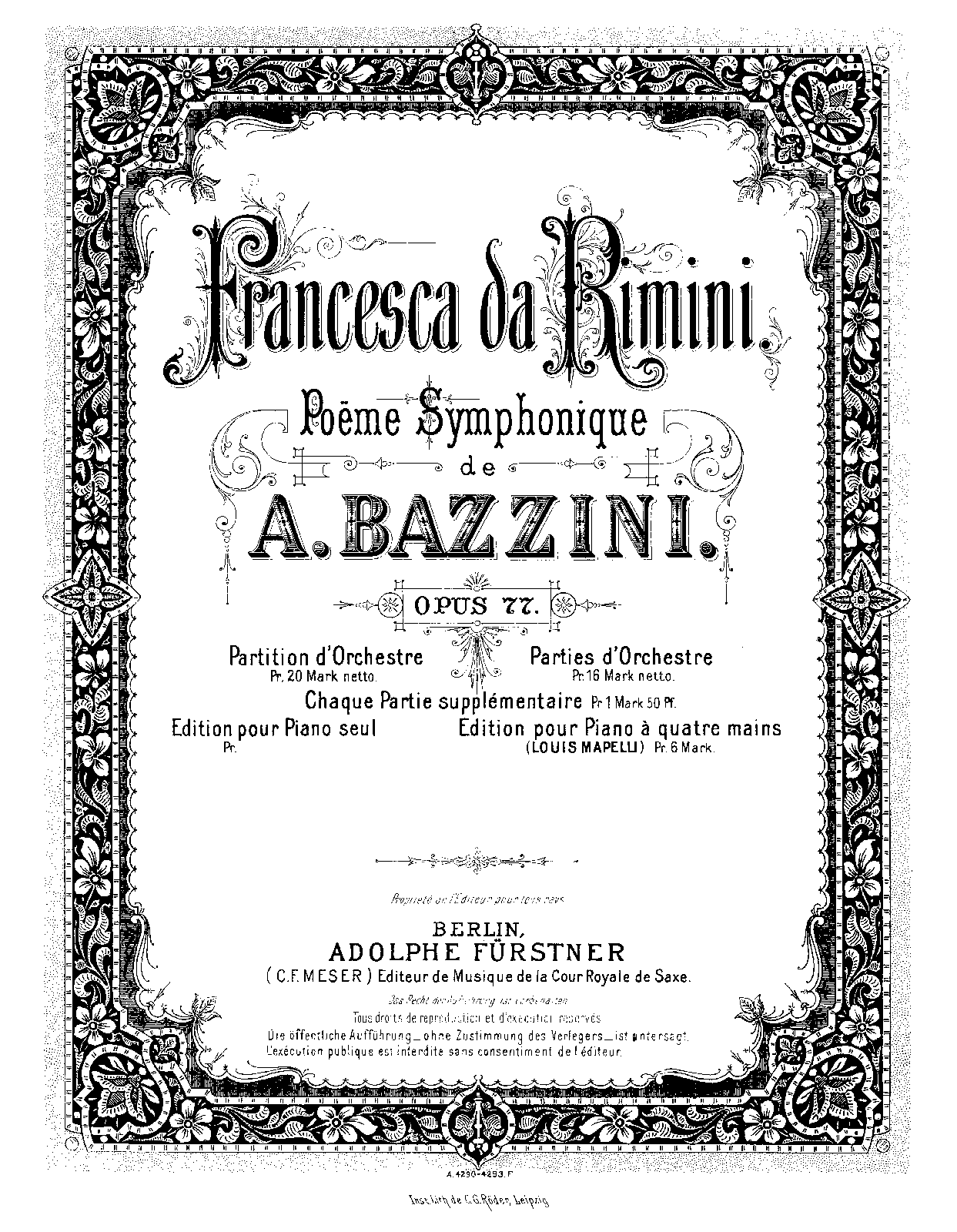 | First Publication. | 1889 – Leipzig: Fürstner |