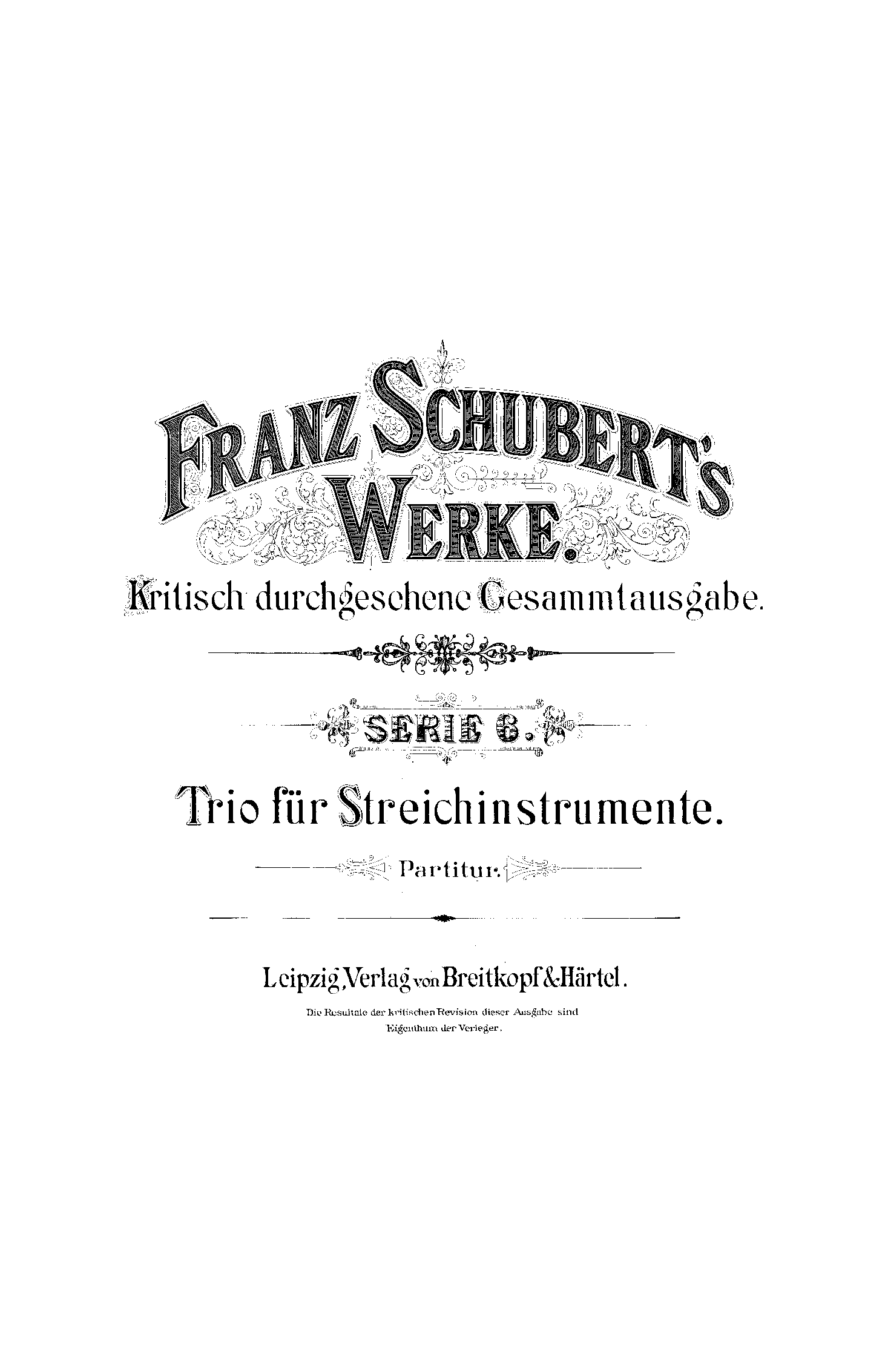 Franz Schubert's Werke, Serie XXII: Revisionsbericht, No.1-12 Leipzig: Breitkopf & Härtel, 1887-1897. Plate F.S.