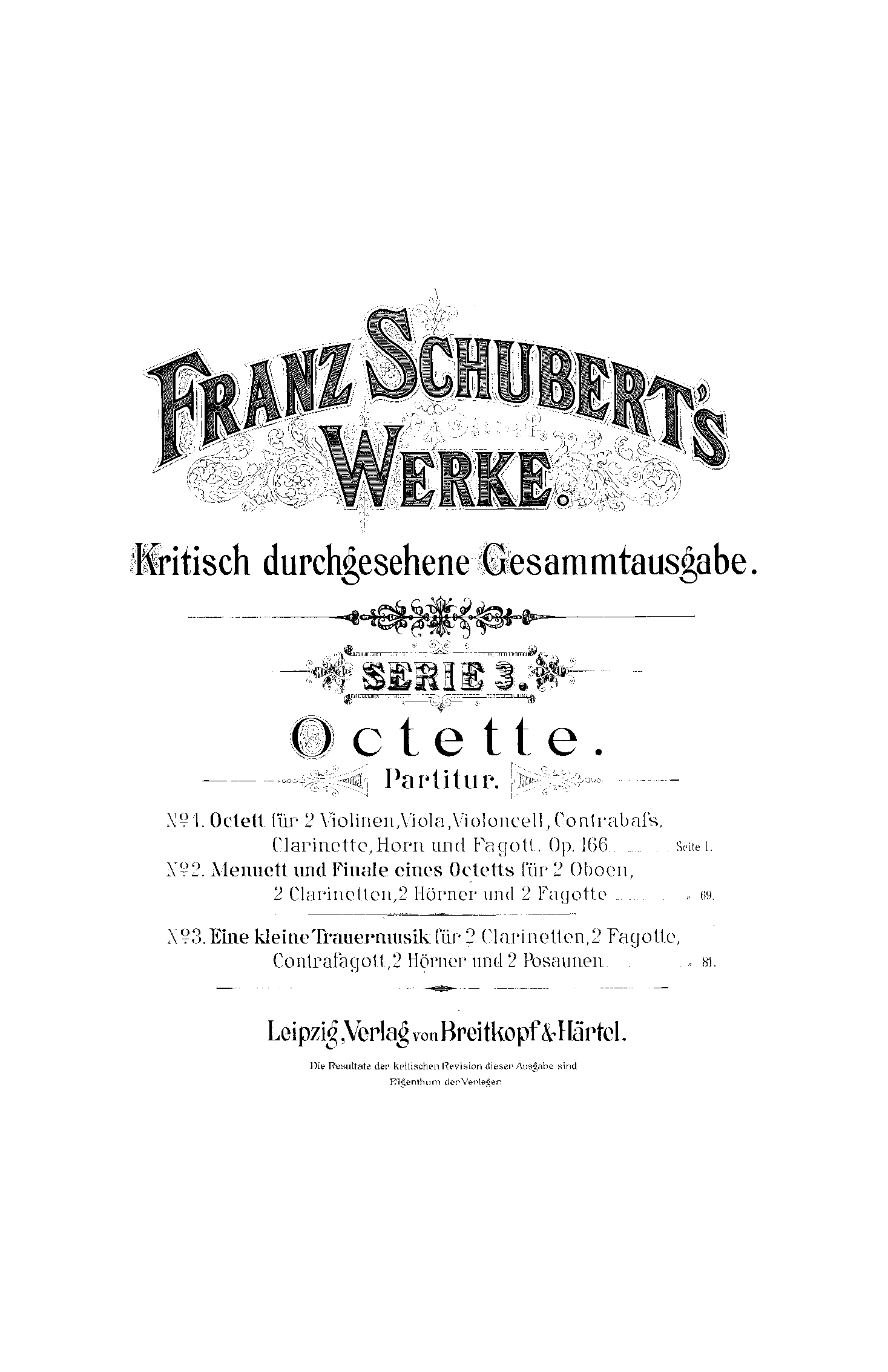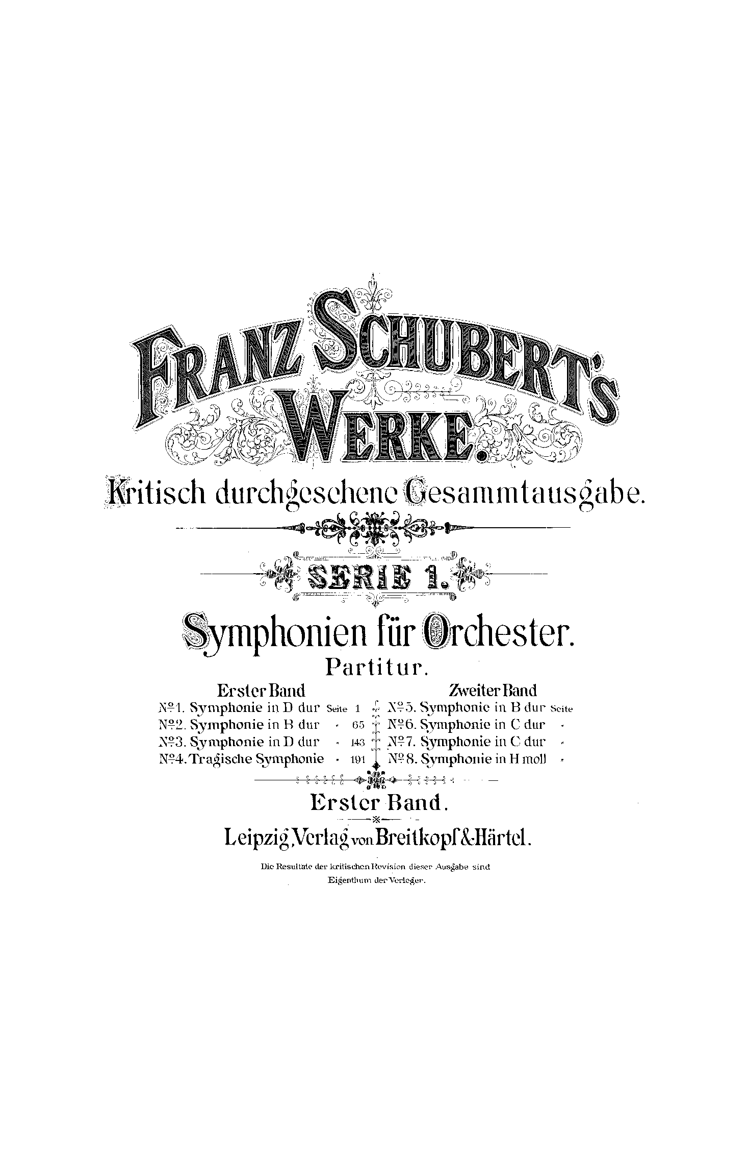 Franz Schubert's Werke, Serie I, No.1-8 Leipzig: Breitkopf & Härtel, 1884-85. Plate F.S. 1-8.