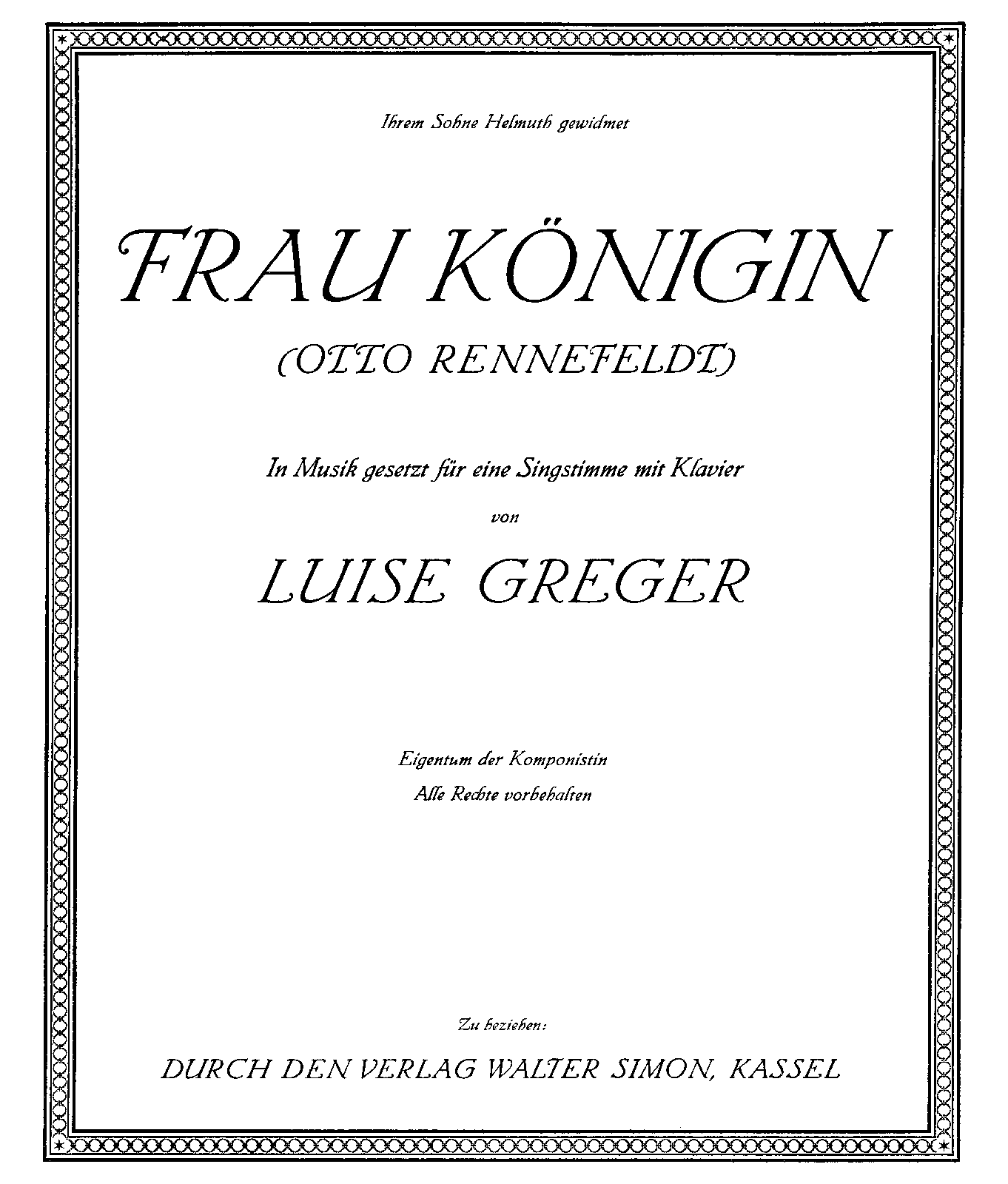 | Dedication | Ihren Sohn Helmuth gewidmet |