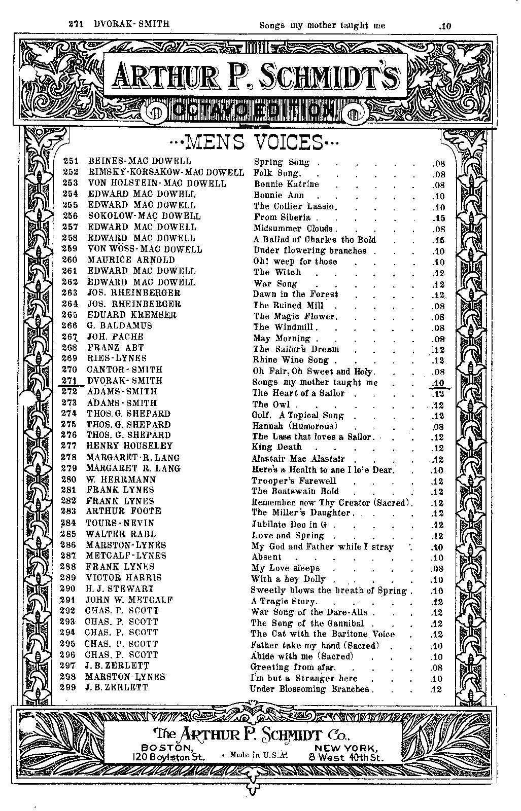 | Genre Categories | Songs; For voice, piano; For voices with keyboard; |