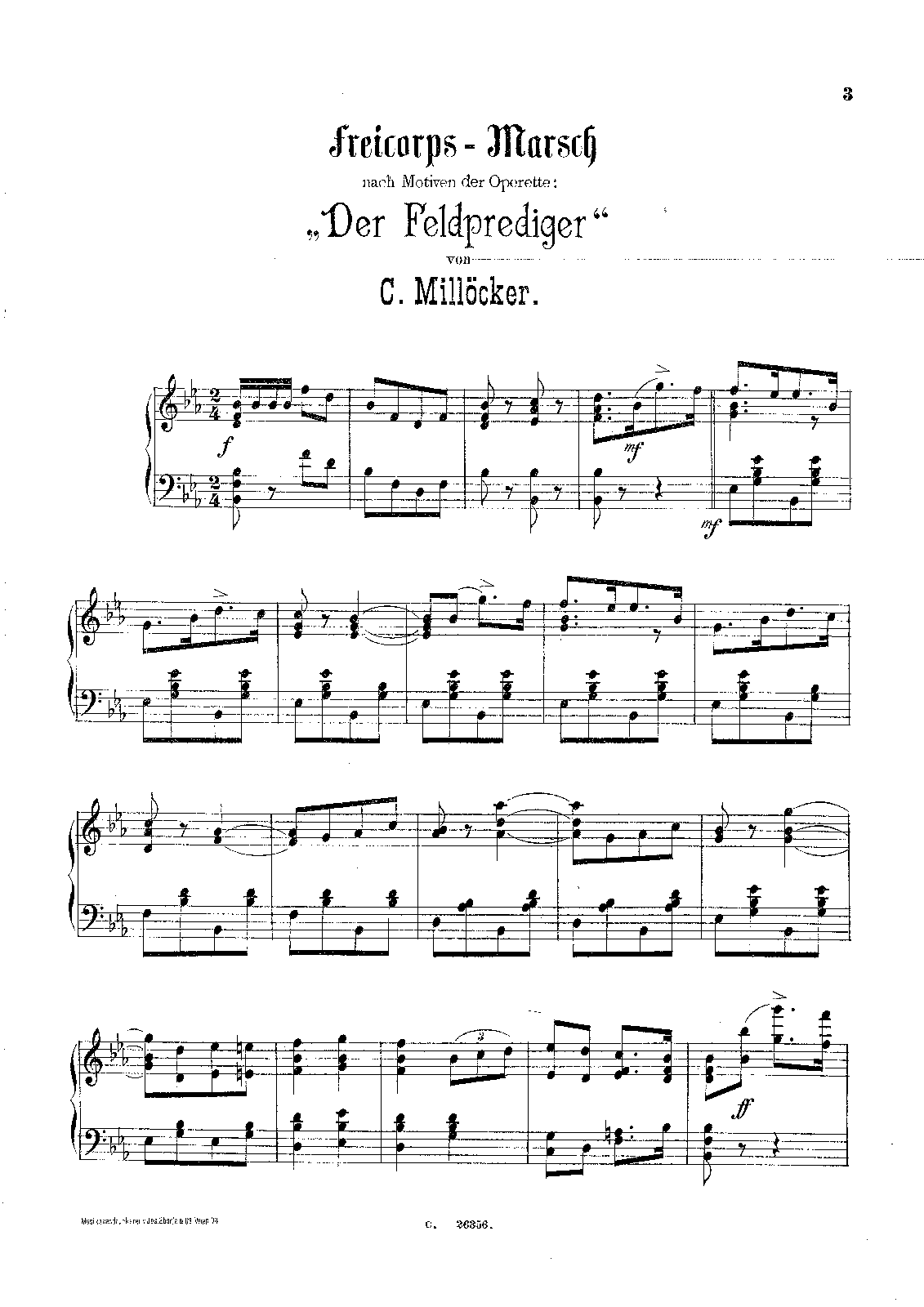 | Alternative. Title | Freicorps-Marsch nach Motiven der Operette "Der Feldprediger" |