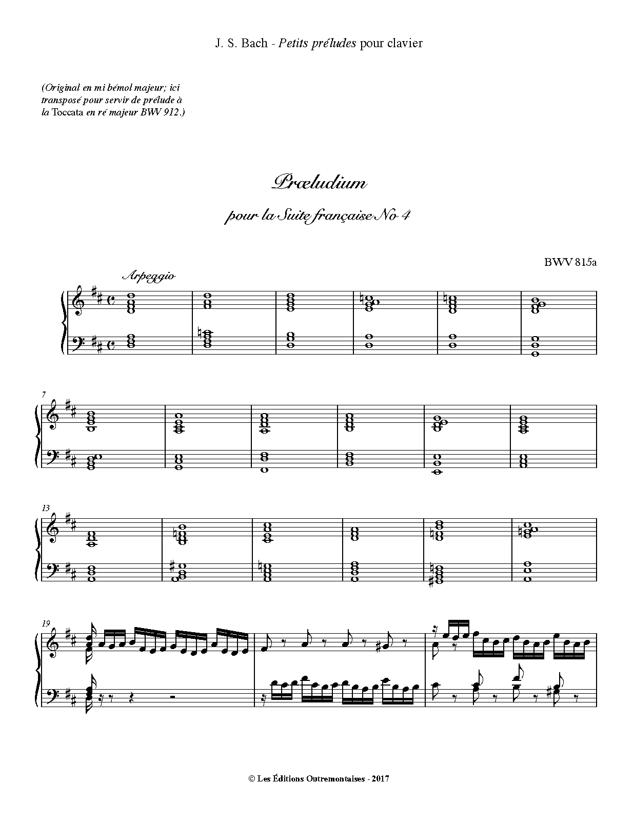 Misc. Notes Transposed to D major to serve as a prelude to Toccata in D major, BWV 912