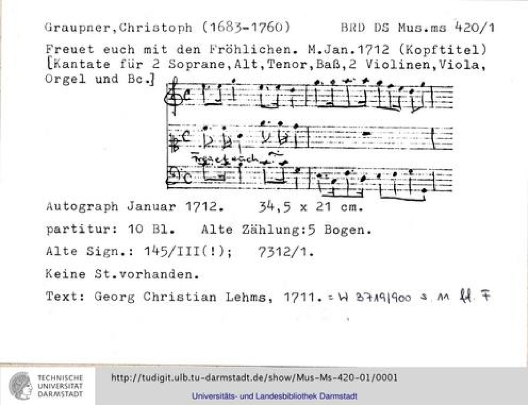| Librettist | Georg Christian Lehms (1684–1717) |