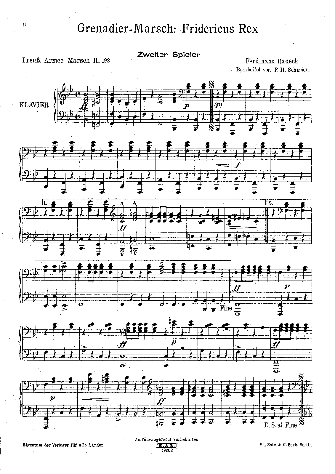 | Alternative. Title | Grenadier-Marsch Fridericus Rex, Preuß. Armee-Marsch II, 198 |
