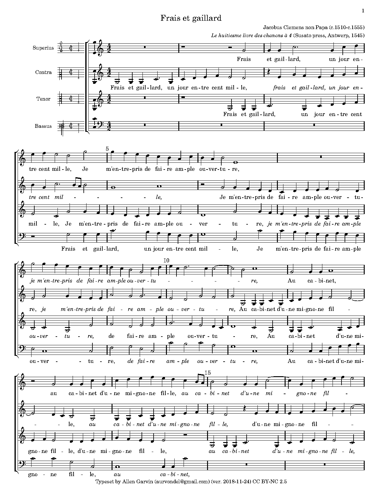 - See: Canzon francese detta 'Frais & Gaillard' by Andrea Gabrieli