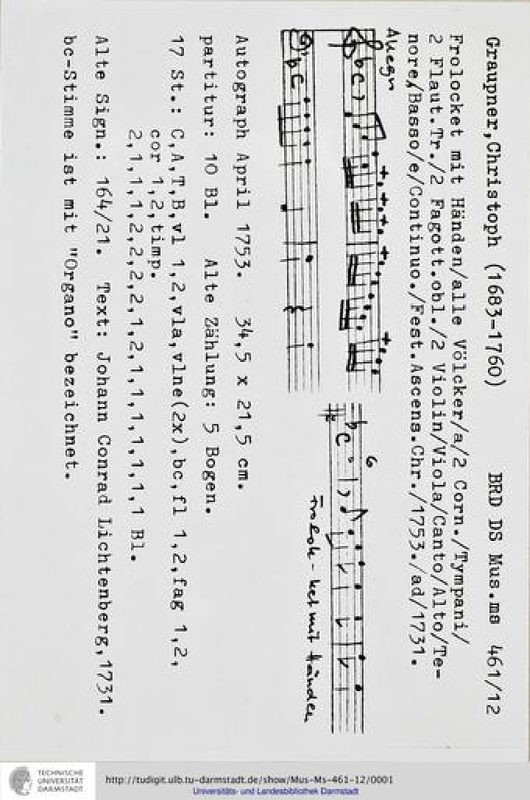 | Work Title | Frohlocket mit Händen alle Völker, GWV 1136/53 |