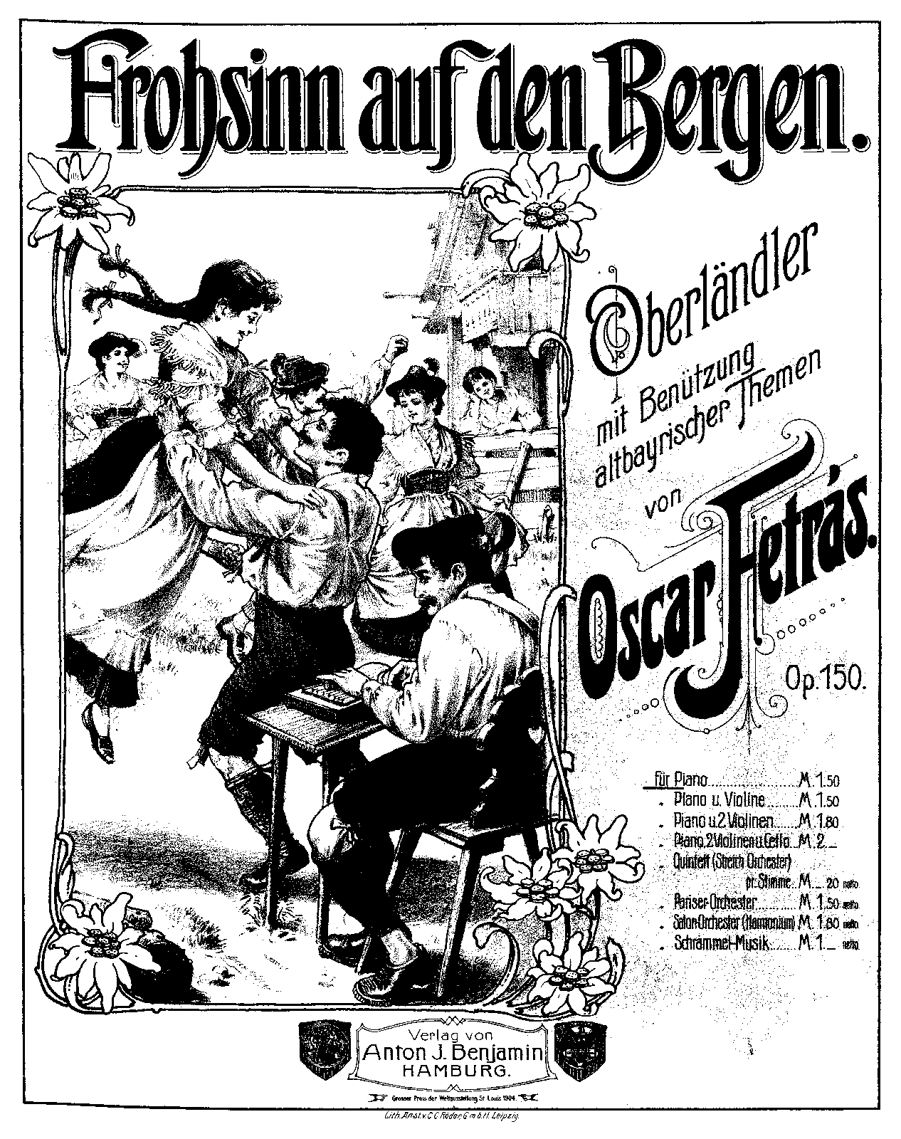 | Extra Information | Oddly, Fetrás' Op.150 does not show up in either the 1907 or 1908 copy of Hofmeister's Verzeichnis despite the copyright dates of 1907 and 1908 on the two solo piano arrangements. |