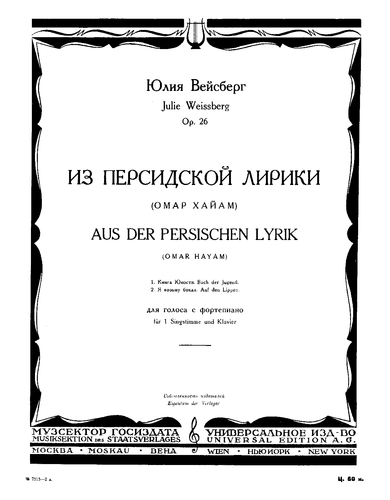 | Alternative. Title | Из персидской лирики; Aus der Persischen Lyrik |