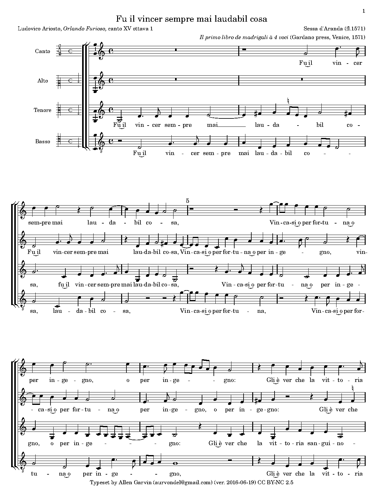 | First Publication | 1571 in Il primo libro de madrigali à 4 voci (No.1) |