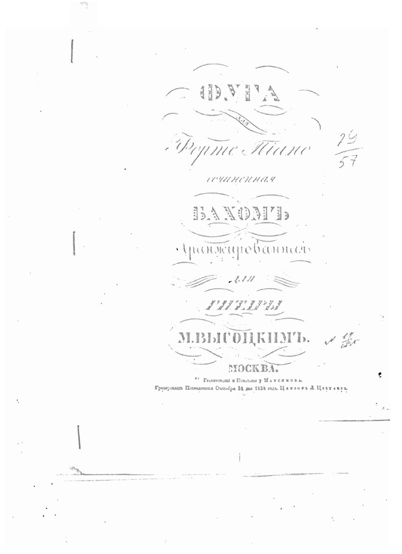 Фуга для фортепиано сочиненная Бахомъ сочиненная Бахомъ Аранжировка для гитары