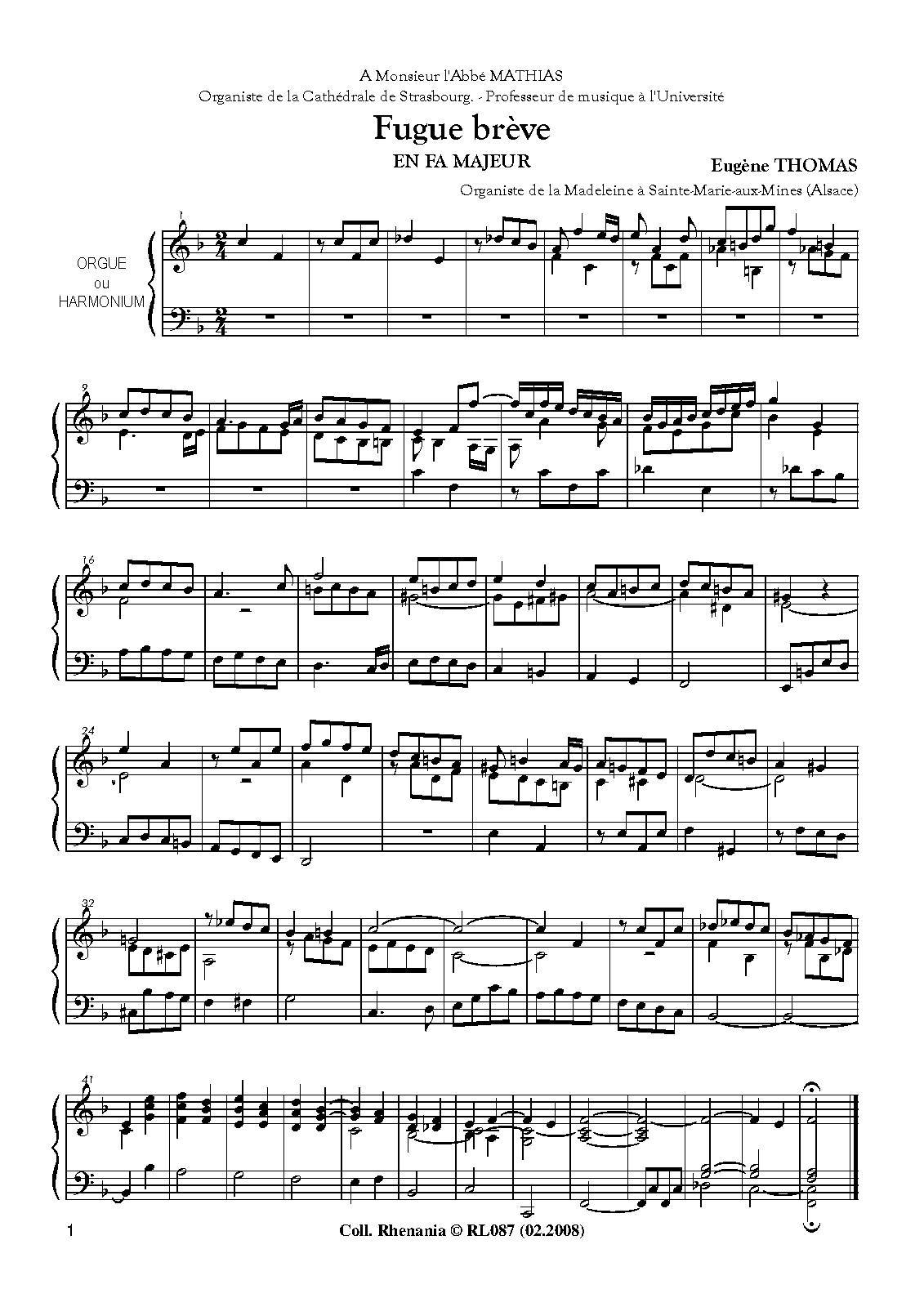 | Work Title | Fugue brève in F major |