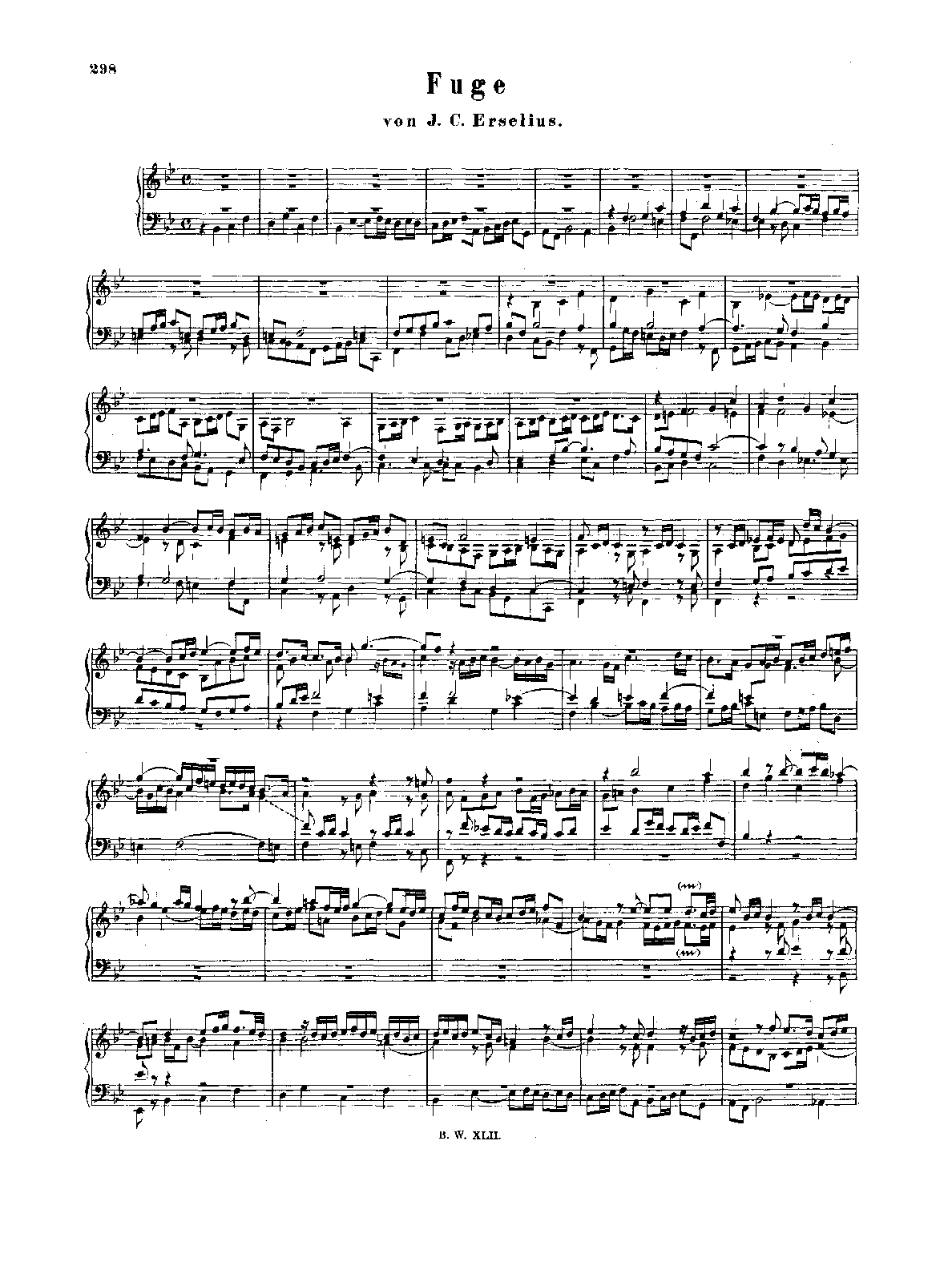 This fugue was previously attributed to Johann Christoph Erselius but has recently been identified as an original work by Johann Sebastian Bach.