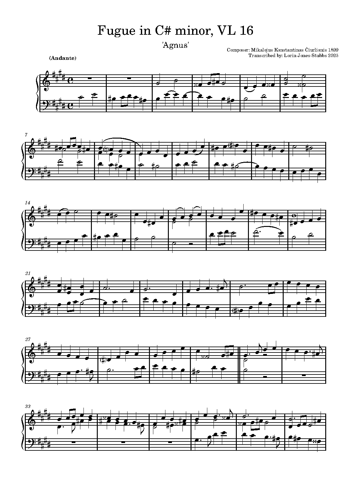 | Genre Categories | Fugues; Agnus Dei; Religious works; |