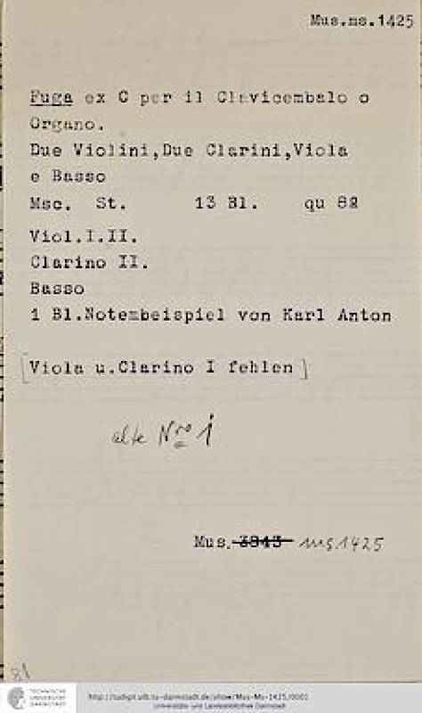 | Opus/Catalogue NumberOp./Cat. No. | ULB Mus. Ms. 1425 |