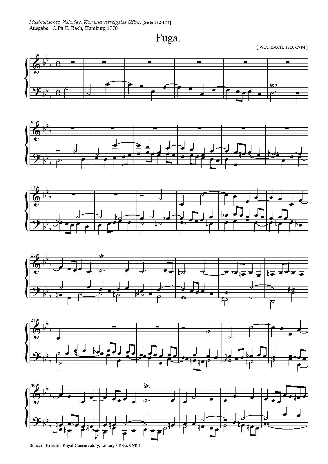 | Authorship Note Formerly misattributed to J.C.F. Bach or W.F. Bach, this fugue has recently been confirmed as the work of J.P. Kellner. |