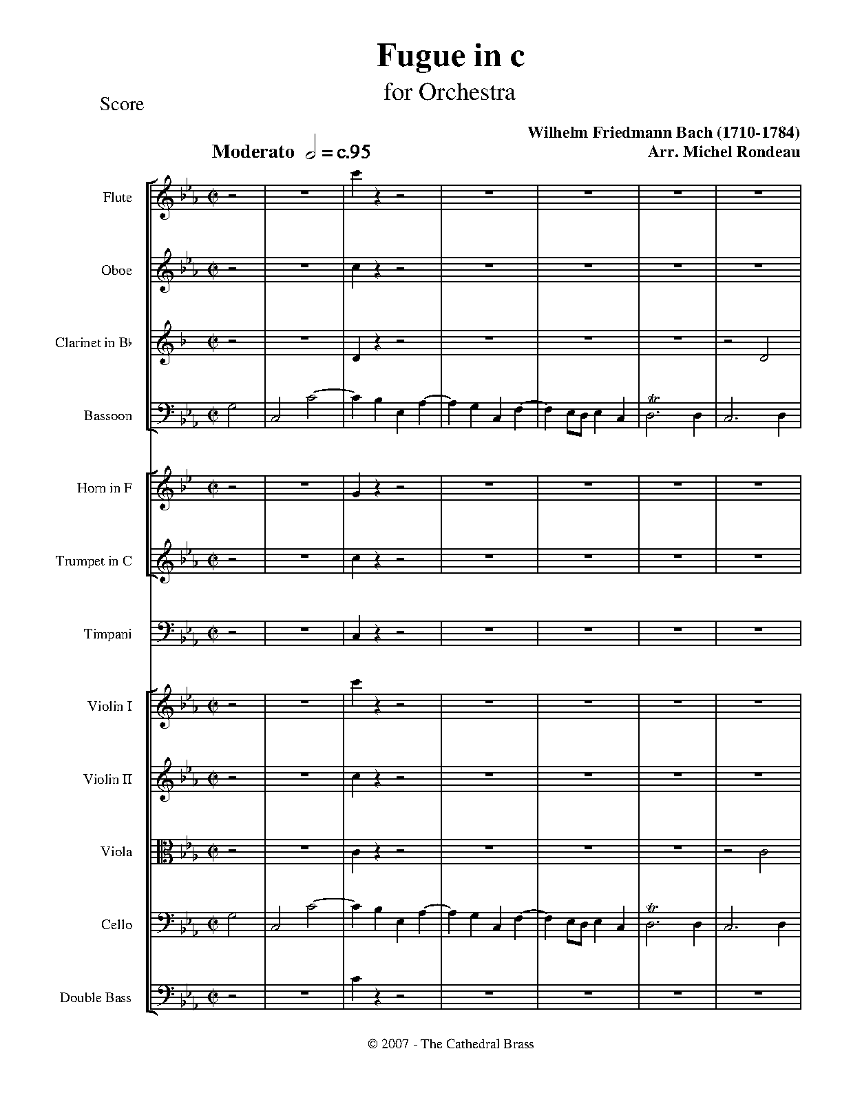 | Manuscript Sources | D-LÜh, Mus. U 188. late 18th cent. copy misattrib. to W.F. Bach US-NH, LM 5006. Copy by Rinck, misattrib. to J.C.F. Bach D-KNh, R 1967. Copy by Hompesch, misatttib. to J.C.F. Bach D-B, 55 MS 10140 (5). 1883 mss attrib. to J.P. Kellner |