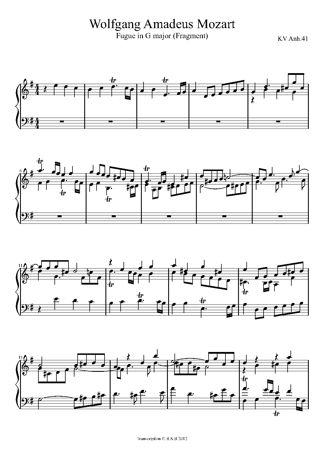 Fugue in G major, K.Anh.41/375g (Mozart, Wolfgang Amadeus)