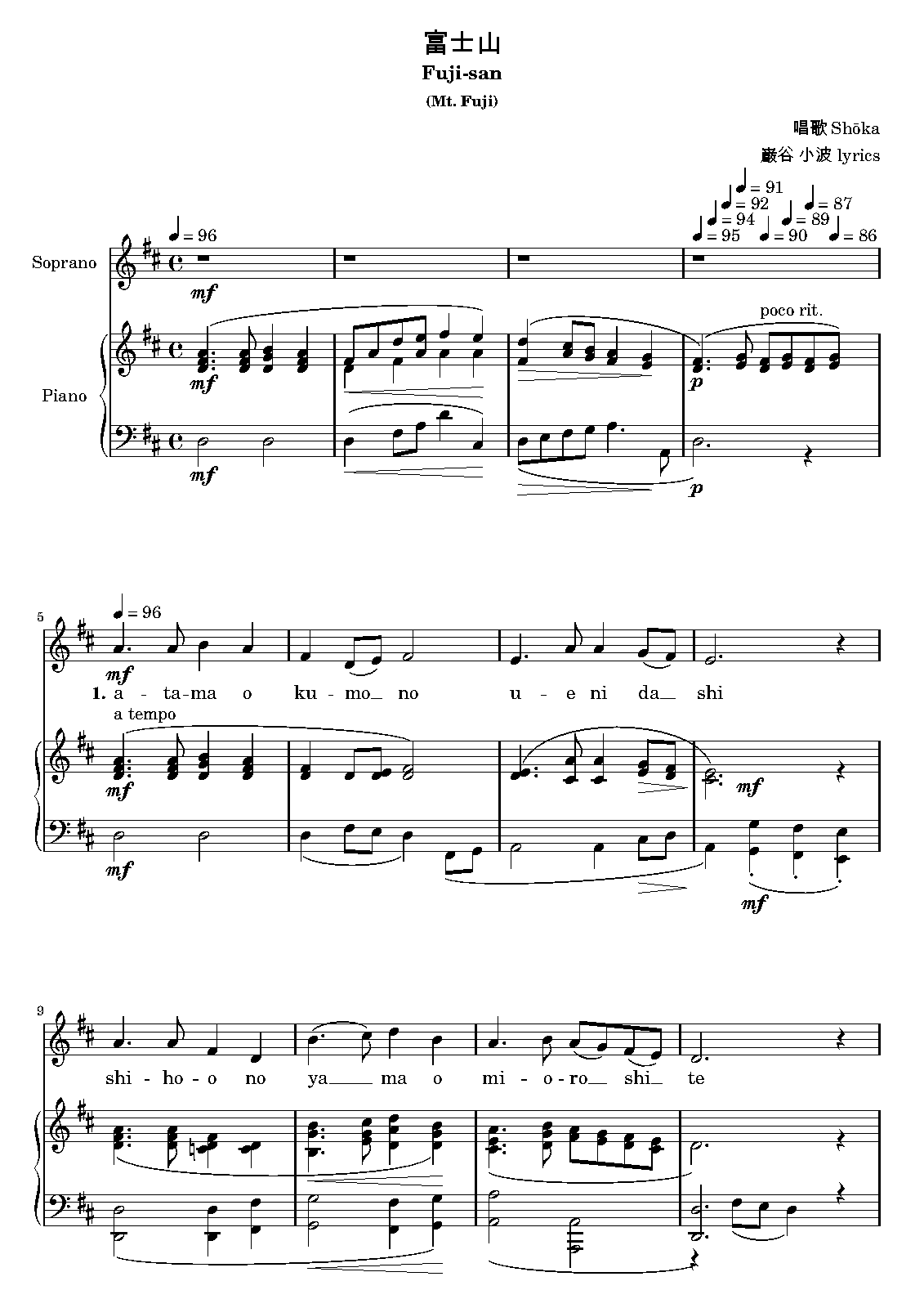 | Alternative. Title | Mount Fuji ; 富士山、ふじの山 ; Shōka ; Japanese school song ; 唱歌 ; 文部省唱歌 |