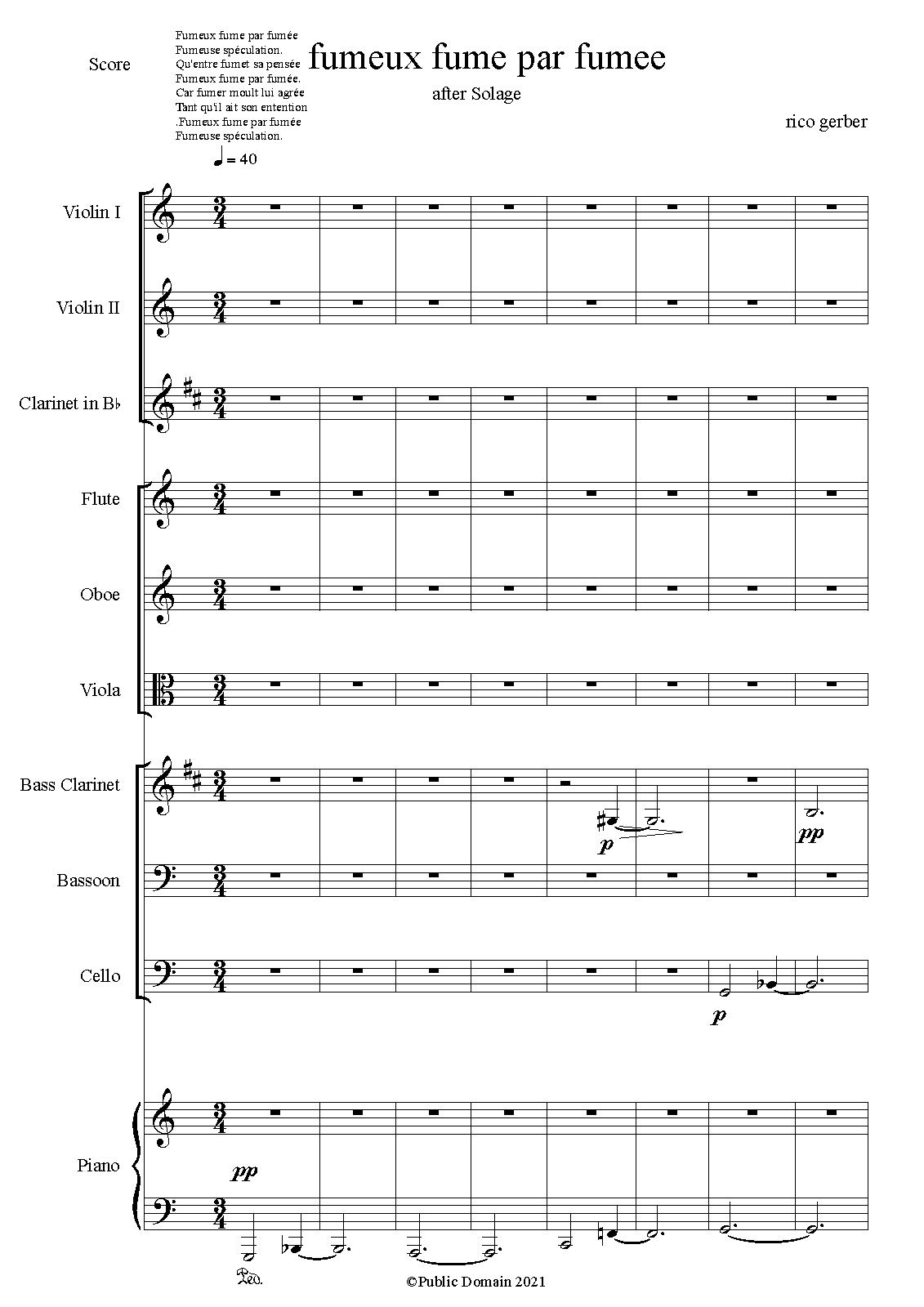 | Genre Categories | Pieces; For flute, oboe, clarinet, bass clarinet, bassoon, 2 violins, viola, cello, piano; Scores featuring the flute; |