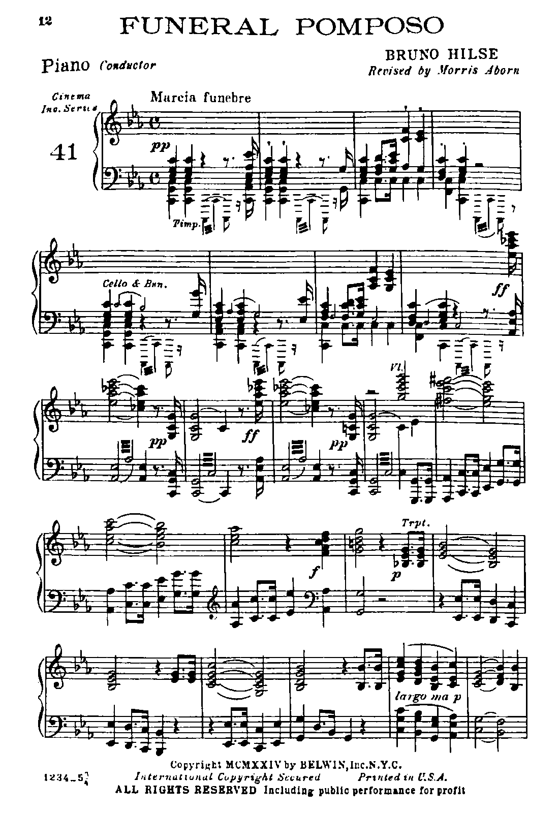 Cinema Incidental Series, No.41 New York: Belwin, Inc., 1924. Plate 1234.