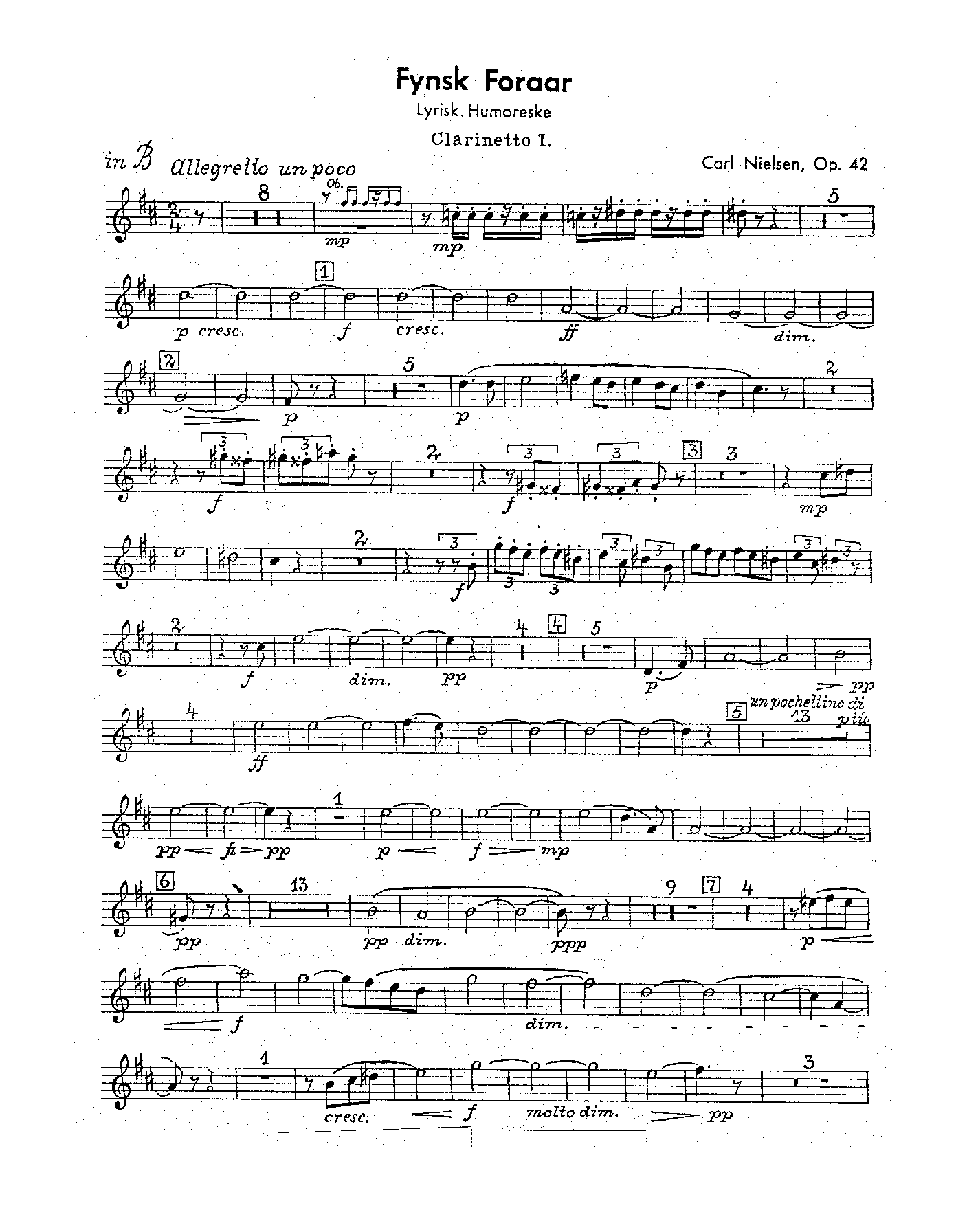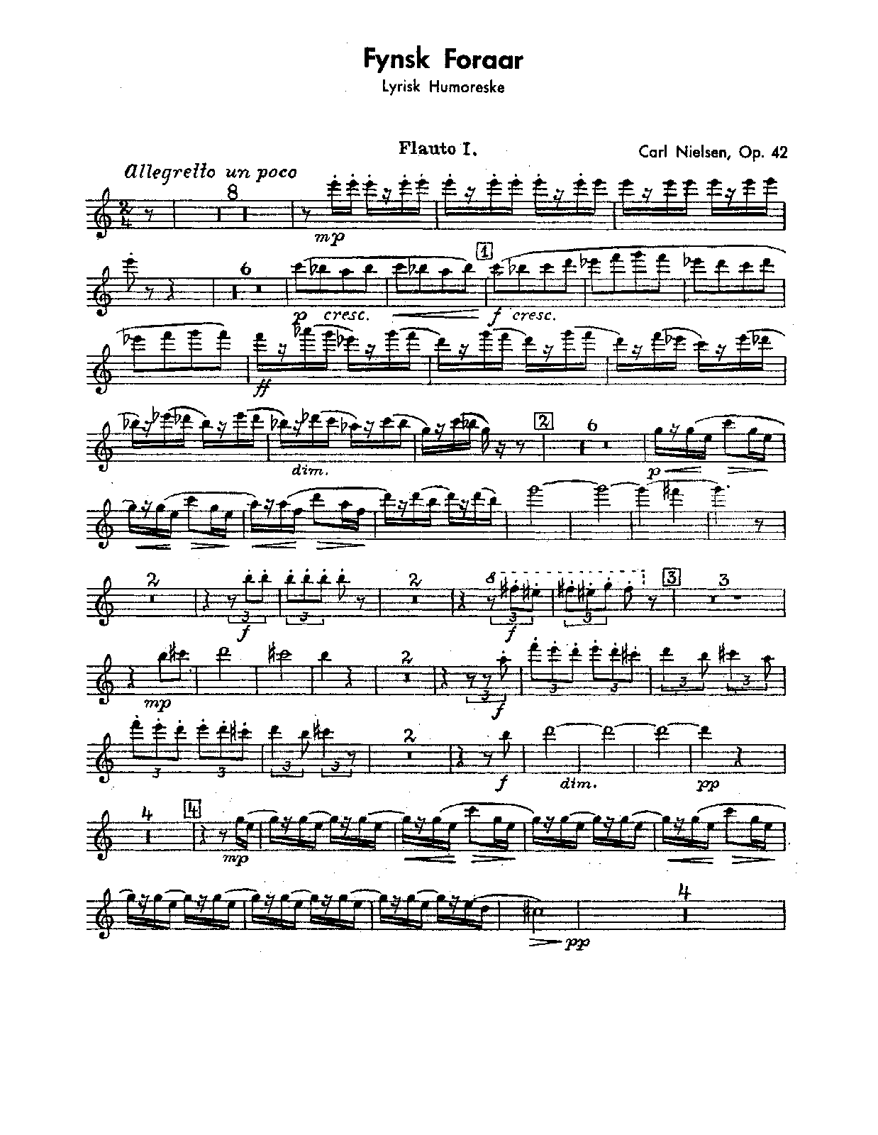 Nielsen composed Fynsk Foraar during an enforced break from the work on the Fifth Symphony during summer 1921. Pressure of time and failing health forced him to ask his pupil Nancy Dalberg to lend a helping hand with the instrumentation and the fair-copying.