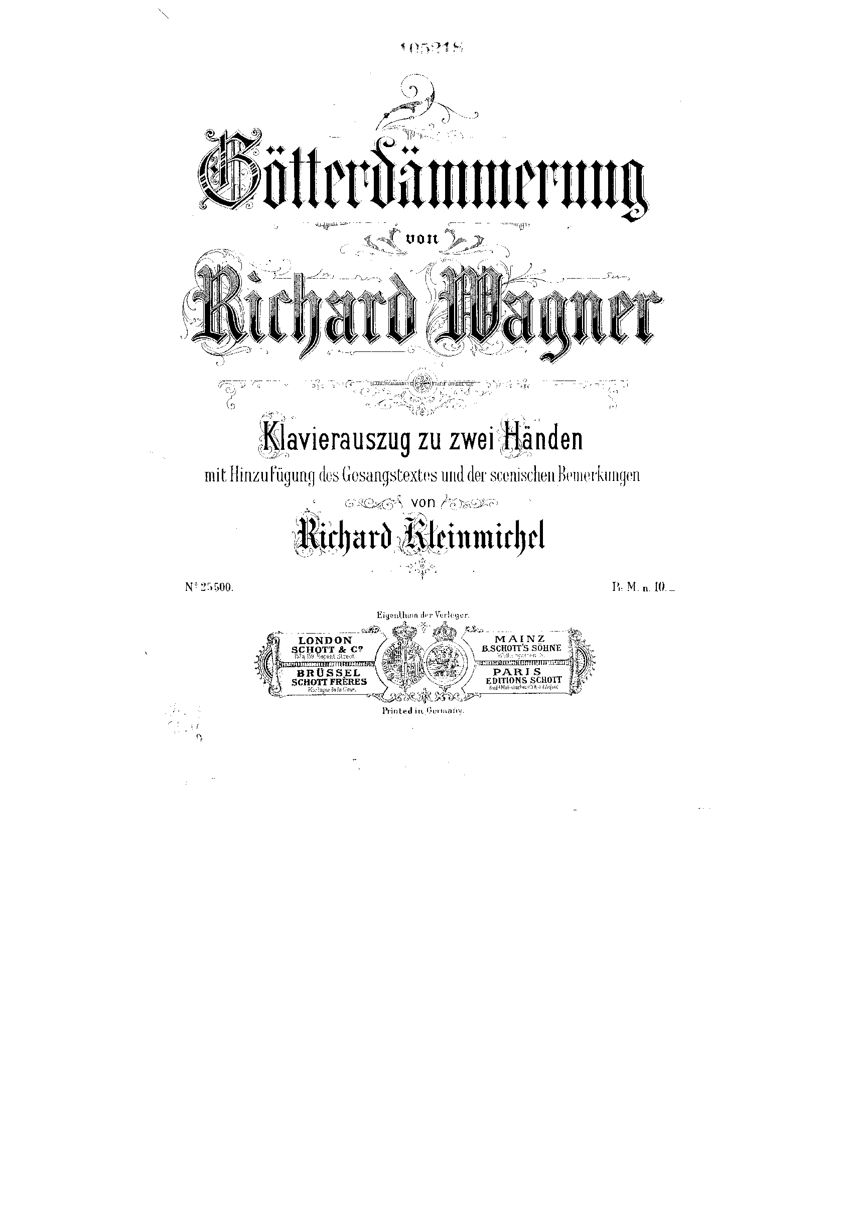 Arranger Richard Kleinmichel (1846-1901), piano reduction (simplified)