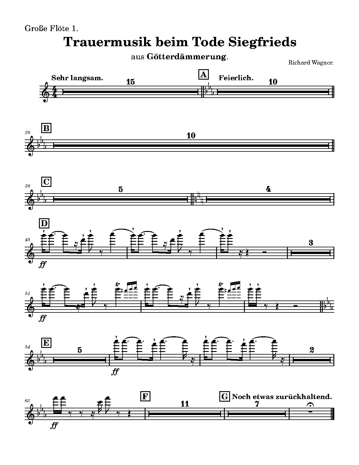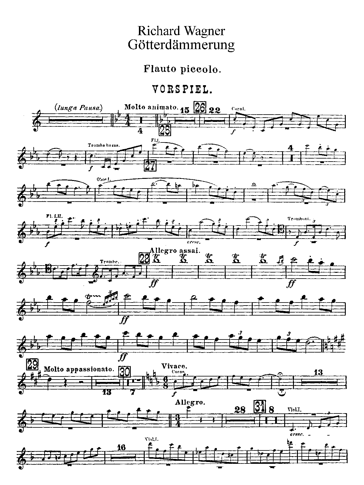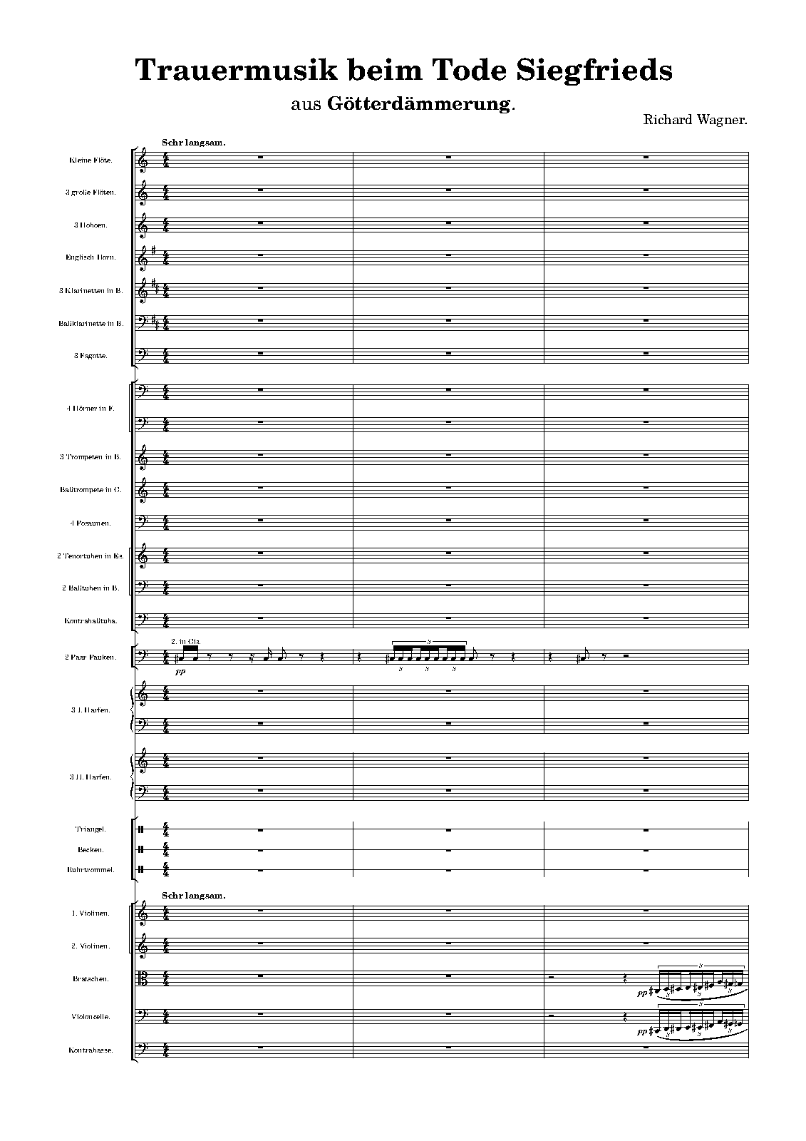 41 more: Flute 1/2 • Flute 3 • Oboe 1/2 • Oboe 3 • English Horn • Clarinet 1/2 (B♭/A) • Clarinet 3 (B♭/A) • Bass Clarinet (B♭/A) • Bassoon 1/2 • Bassoon 3 • Horn 1/2 (F/E/E♭, Onstage) • Horn 3/4 (F/E♭/E/B/B♭ basso/C) • Horn 5/6 (B♭/C/D/E♭/E/F) • Horn 7/8 (B♭/C/D/E♭/E/F) • Horn 1 (F, Offstage) • Horn 2 (C, Offstage) • Stierhorn 1/2/3 (C/D♭/D, Onstage) • Trumpet 1/2 (B♭/C/D♭/D/E♭/E/F) • Trumpet 3 (D♭/D/E♭/E/F) • Bass Trumpet (C/D/E♭/E) • Trombone 1 • Trombone 2 • Trombone 3 • Contrabass Trombone • Tenor Wagner Tuba 1/2 (B♭/E♭) • Bass Wagner Tuba 1/2 (B♭/F) • Contrabass Tuba • Timpani 1 • Timpani 2 • Triangle • Cymbals • Snare Drum • Tam-Tam • Glockenspiel • Harp 1/2/3 • Harp 4/5/6 • Violins I • Violins II • Violas • Cellos • Basses