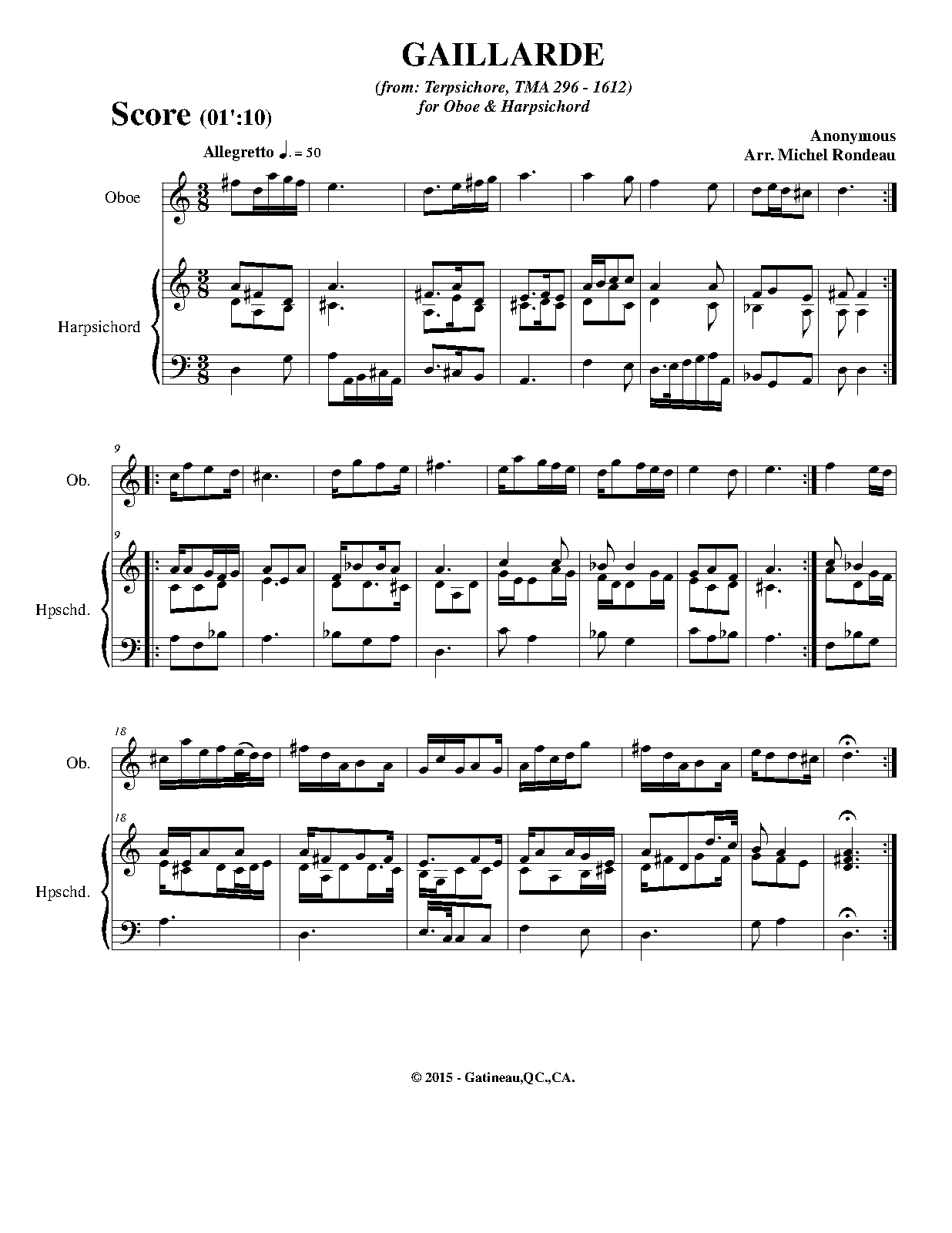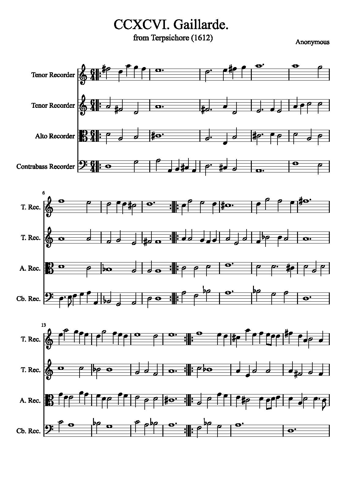 | Extra Information | These pieces were assembled and arranged by Praetorius for his 1612 collection. It is unknown how many, or if any, of the works in the collection were actually composed by Praetorius as opposed to being popular dance tunes arranged by him. The instrumentation is not specified in the original, and simply listed as "à 4". |
