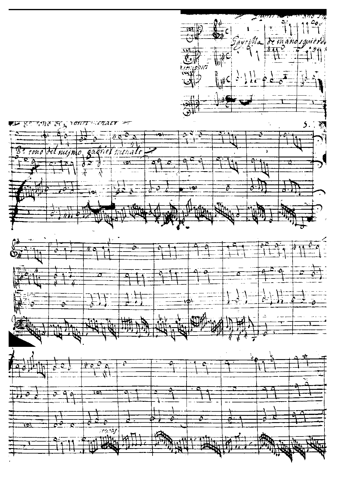 Misc. Notes From a collection of Spanish organ pieces compiled by Gabriel Menalt (1657-1687) BNC No. M 729. Cleaned, margins reduced and converted to monochrome. Systems split in 2.