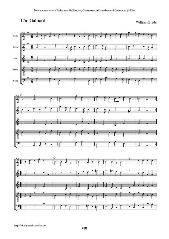 | First Publication | 1609 in Newe ausserlesene Paduanen, Galliarden, Cantzonen, Allmand und Couranten (No.16) |