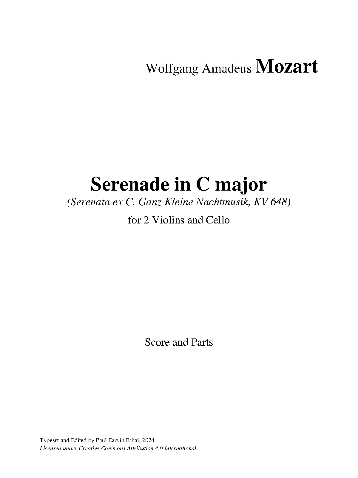 KV 648; Serenate ex C; Eine ganz kleine Nachtmusik; Ganz kleine Nachtmusik, KV 648; Serenade in C-Dur KV 648; Serenade in C-Dur; KV 648 Serenade in C for 2 violins and basso; KV 648 Serenade in C; Serenade in C; 極小夜曲