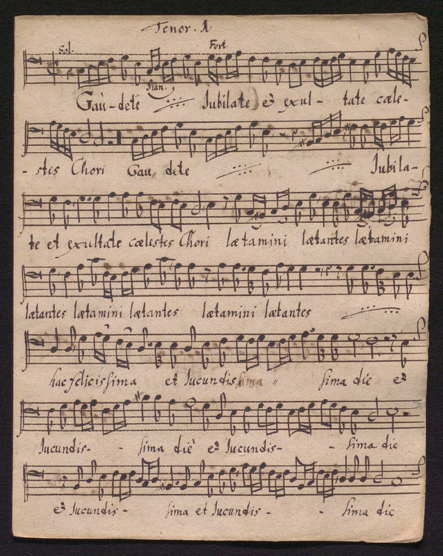 | Alternative. Title | In Festo Ascensionis Christi. / Gaudete Jubilate. / 3. Voc. due Ten: è Basso. / con / Basso Continuo / Auth: / Angellini Romani. Venet. / 8. |