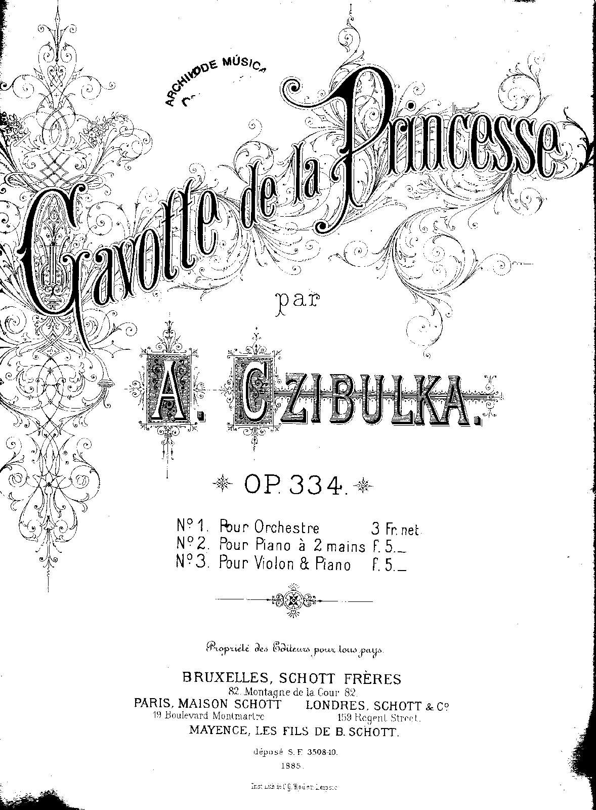 Brussels: Schott Frères, 1885. Plate S.F. 3508.
