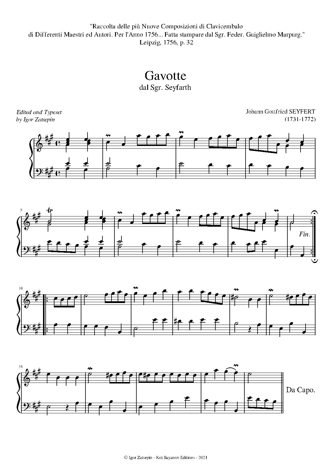 | Alternative. Title | Gavotte dal Sgr. Seyfarth |