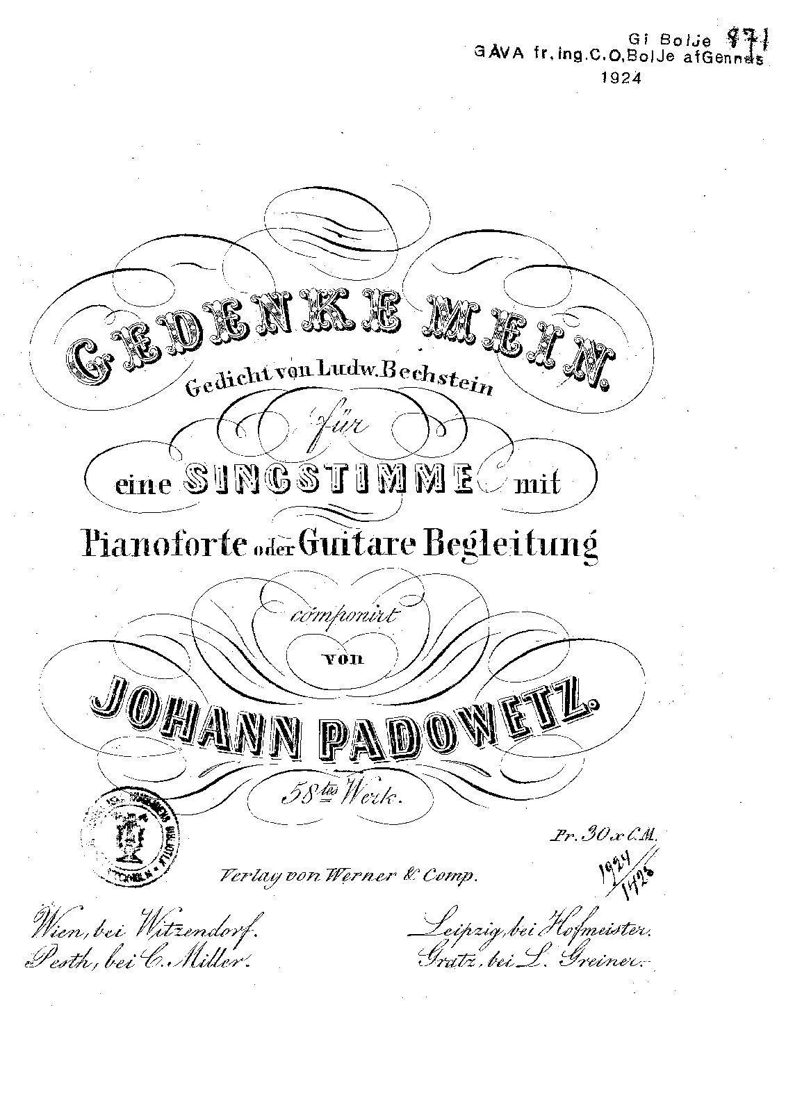 | Alternative. Title | Gedenke Mein, Gedicht von Ludw. Bechstein |
