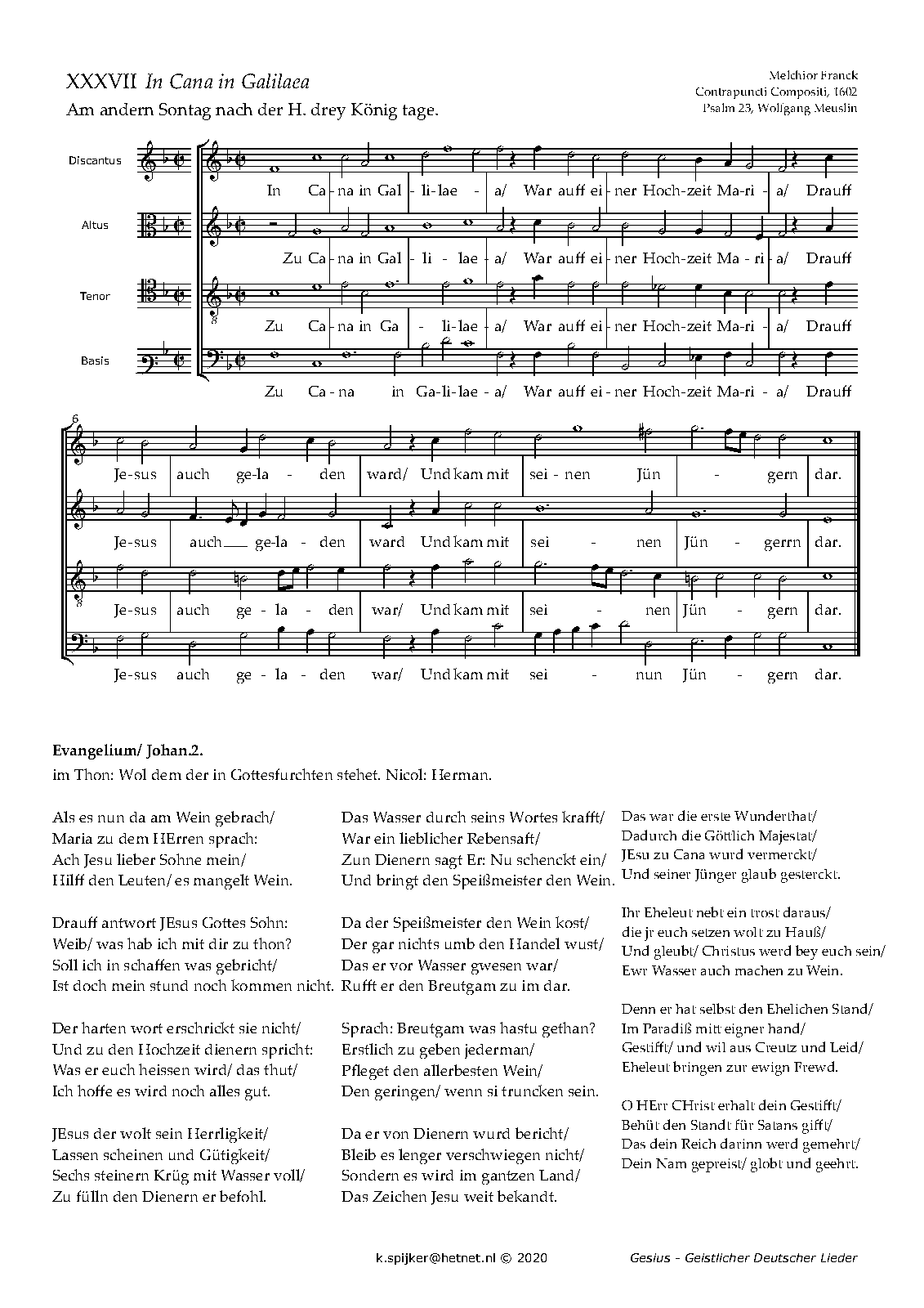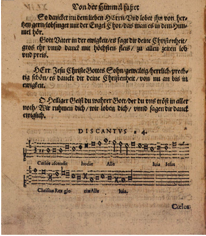 | Alternative. Title | Geistliche Deutsche Lieder. D. Mart. Lutheri: Vnd anderer frommen Christen : welche durchs gantze Jahr in der christlichen Kirchen zu singen gebreuchlich, mit vier und fünff Stimmen nach gewönlicher Choralmelodien richtig und lieblich gesetzet ; Mit einem nützlichen Register wie sie auff jedes Fest und Sontagen durchs gantze Jahr zu singen |
