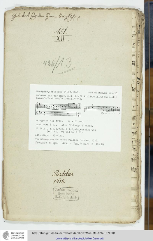 | Opus/Catalogue NumberOp./Cat. No. | GWV 1133/18 |
