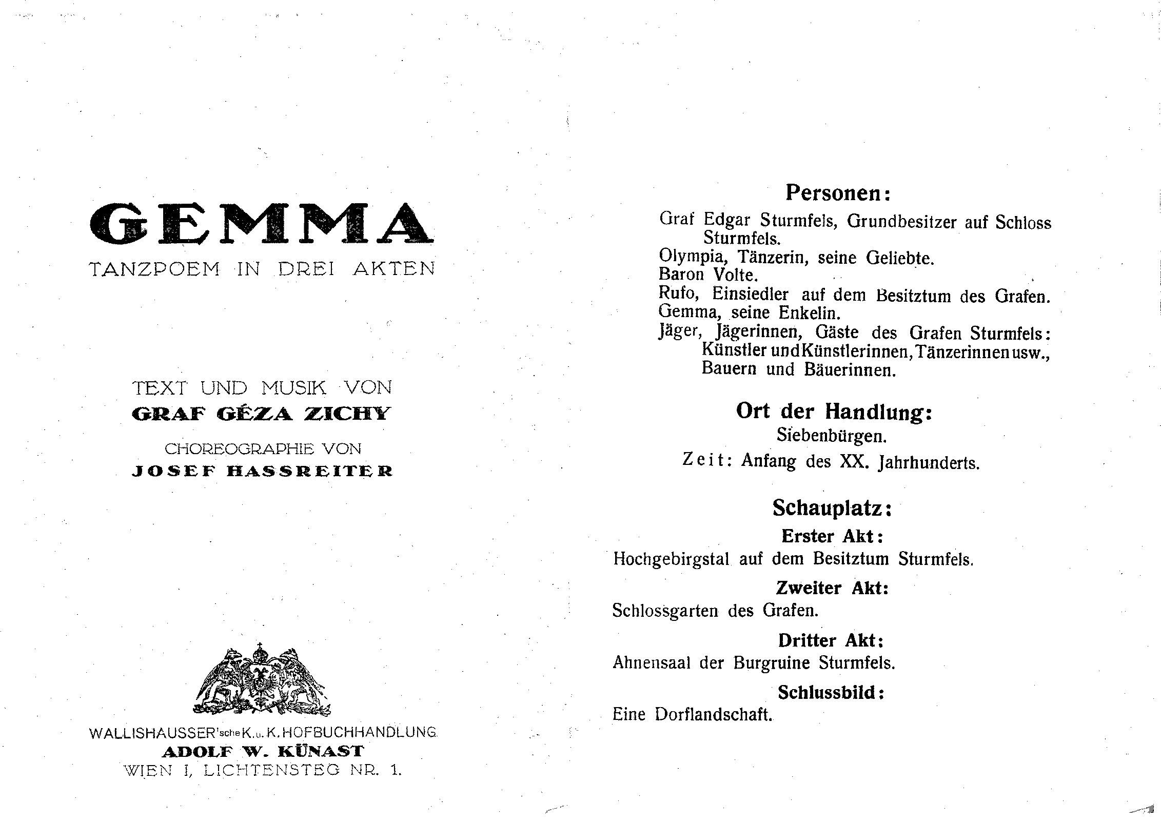 | Librettist | Composer Joseph Hassreiter (1845–1940), scenario |