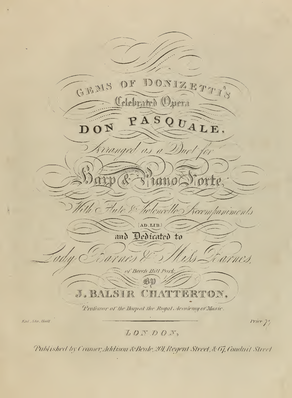 "Arranged as a Duet for Harp & PianoForte With Flute & Violoncello Accompaniments (ad lib.)