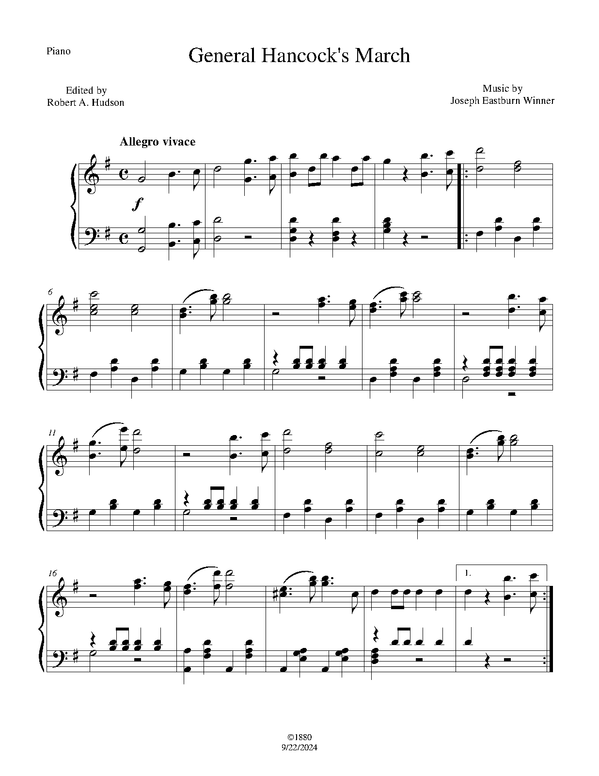 | Extra Information | His brother Septimus also wrote a march to Gen. Hancock. |