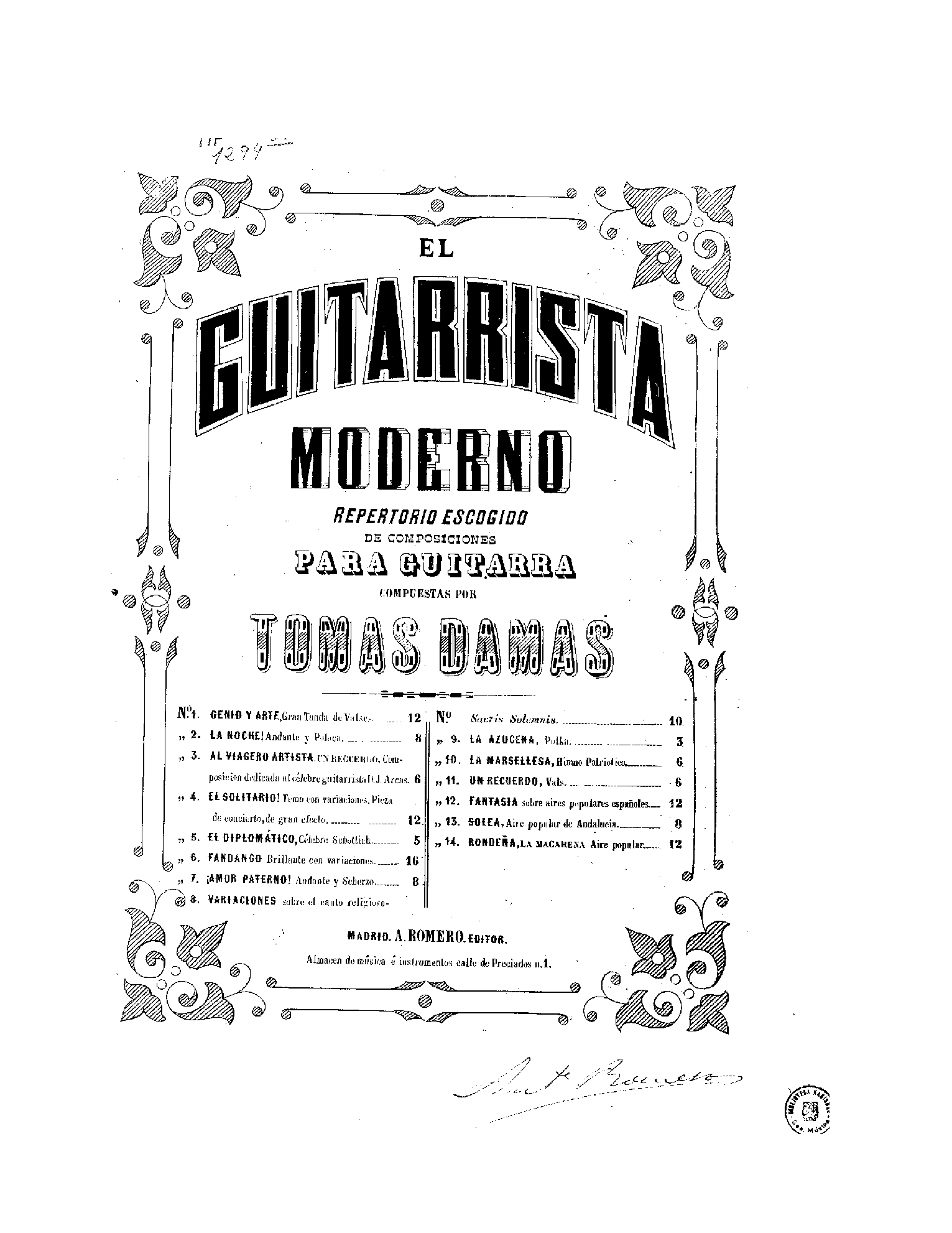 | Dedication | A D. Antonio Romero y Andia |