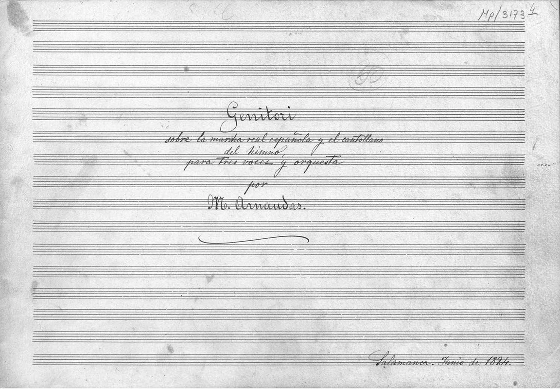 | Alternative. Title | Sobre la marcha real española y el cantollano del himno, para tres voces y orquesta |